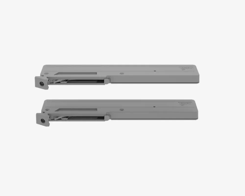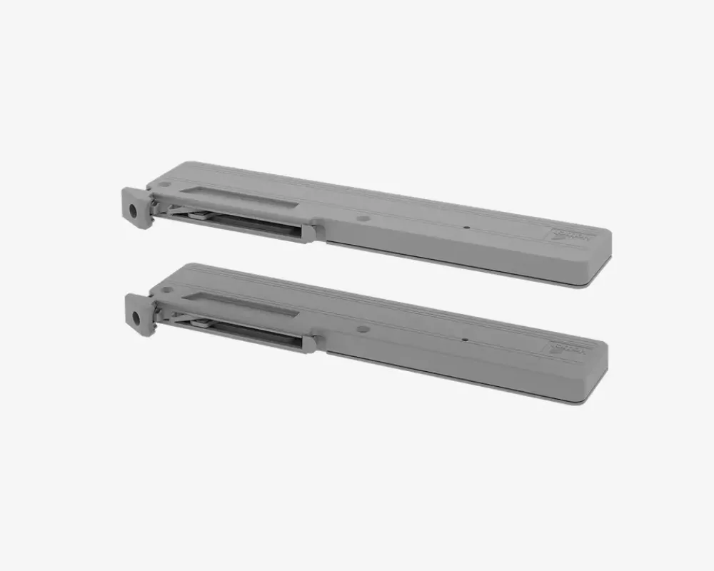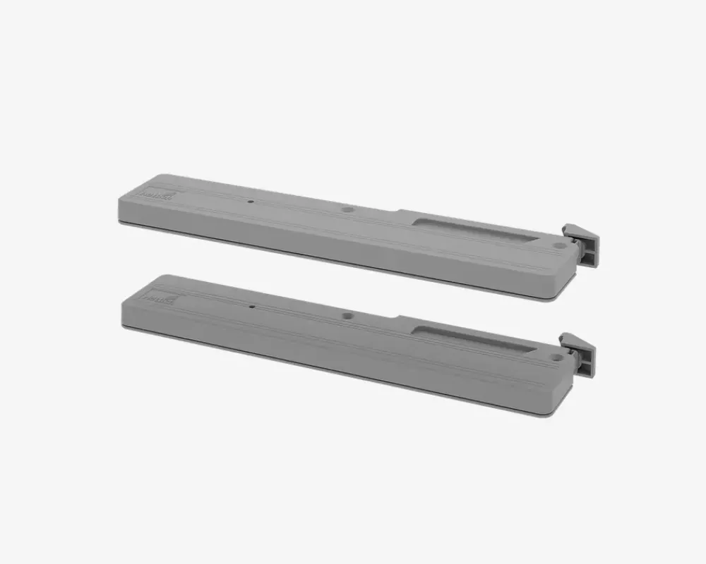 Hvis du ønsker en eksklusiv følelse når du åbner og lukker dit Case skab, har du mulighed for at tilkøbe dette dørdæmpersæt. Dørdæmper sættet betyder at skydelågen vil lukke stille og roligt hver gang. Sættet monteres i skinnen. Det kræver ingen vedligeholdelse eller rengøring