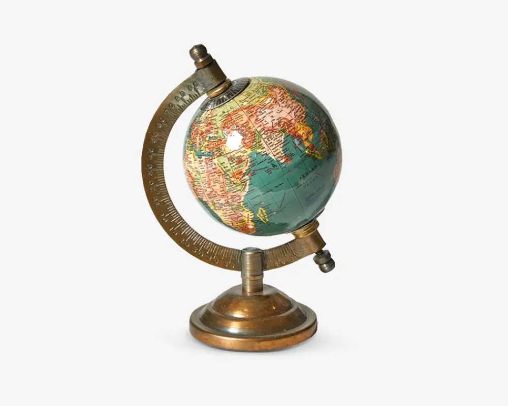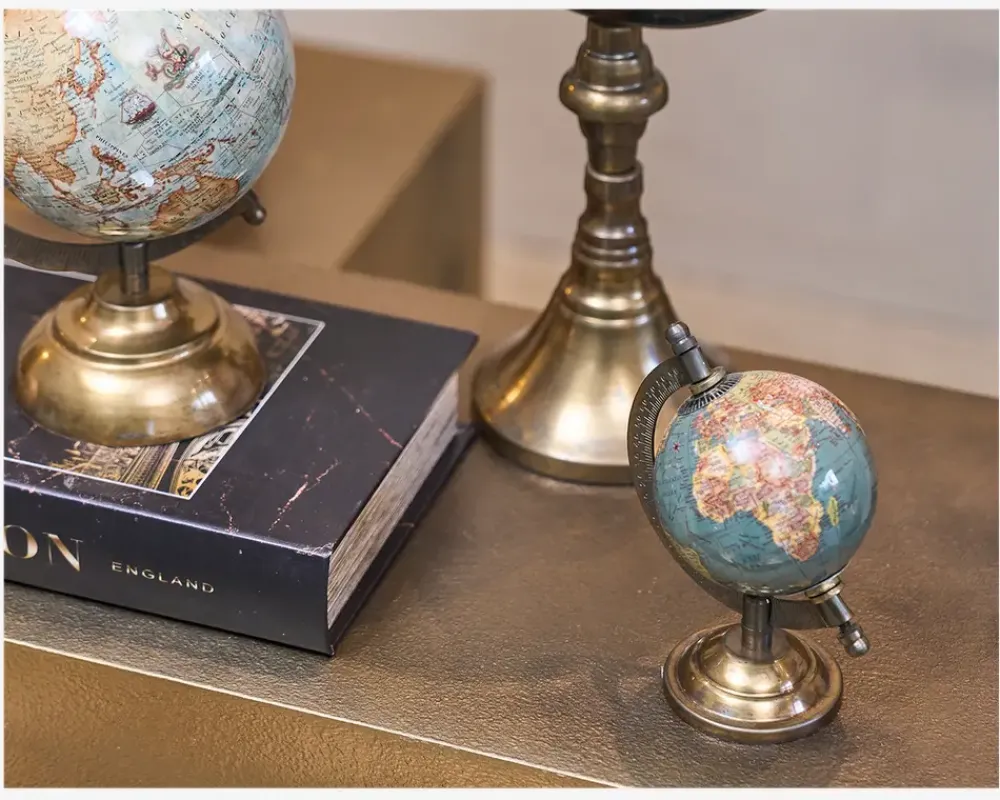 Dekorativ globus med en højde på 15 cm. En iøjnefaldende detalje til hjemmet, hvor den kan bruges som pynt på skrivebordet, hylden eller i reolen. Perfekt til den rejselystne.
