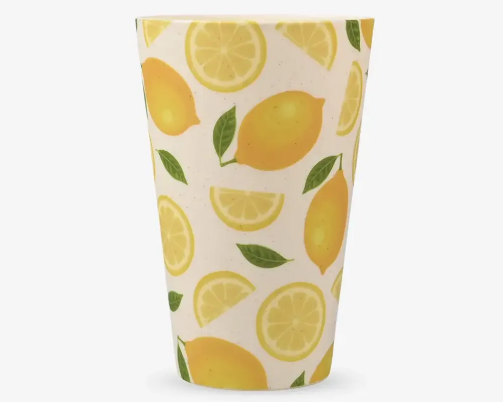Krus i melamin der er dekoreret med et friskt og sommerligt citronmotiv, der bringer en let og hyggelig stemning til bordet. Melamin er et let og holdbart materiale, der gør kruset ideelt til både hverdag og udendørs brug – perfekt til picnic, camping eller hyggelige stunder i haven. Kruset er nemt at rengøre og tåler opvaskemaskine, hvilket gør det praktisk.