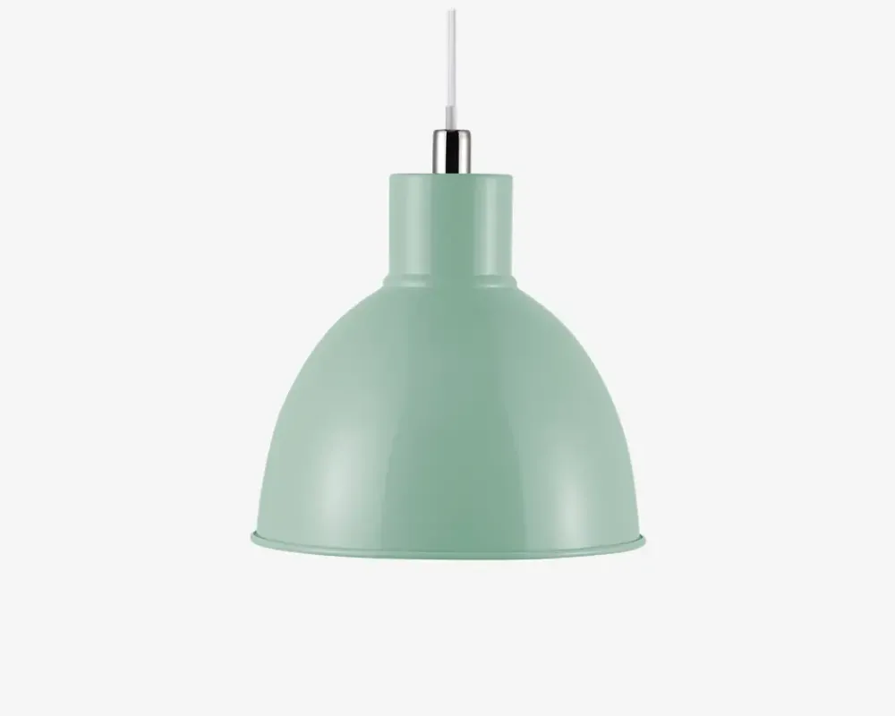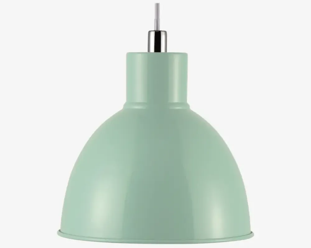 Pop serien er en fin lille industrielt designet lampe med et udvalg af flere farver.Pop egner sig til de fleste rum, men egner sig særdeles til køkken, kælder eller som en samlet klynge i hjørnet af stuen eller soveværelset.Kombinér med andre dele af serien og fuldend indretningen.• Mål i cm: H.20 x Ø.21,5• Ledningslænge: 200 cm• Fatningstype: E27 maks 40W• Farve: Grøn• Materiale: Metal og Plastik• Ekskl. lyskilde