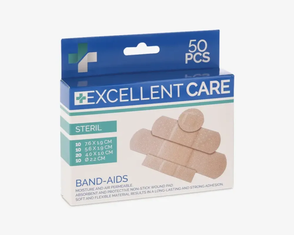 Plastersæt med 50 stk. der kommer i 4 forskellige størrelser.
