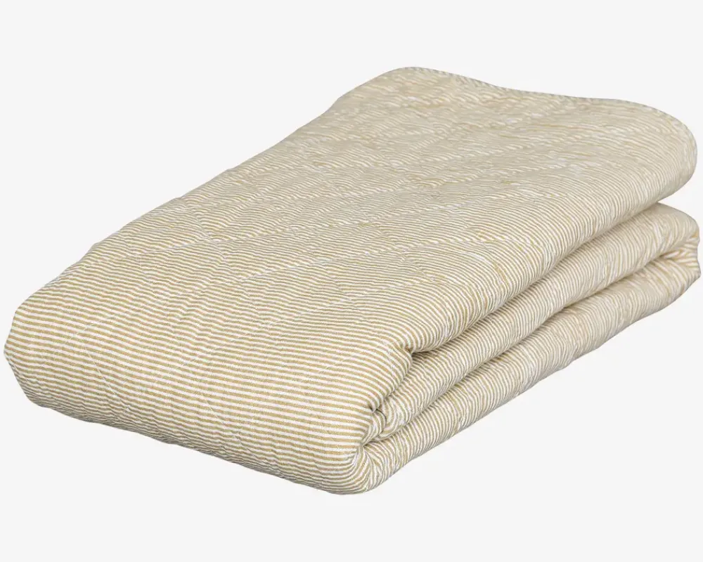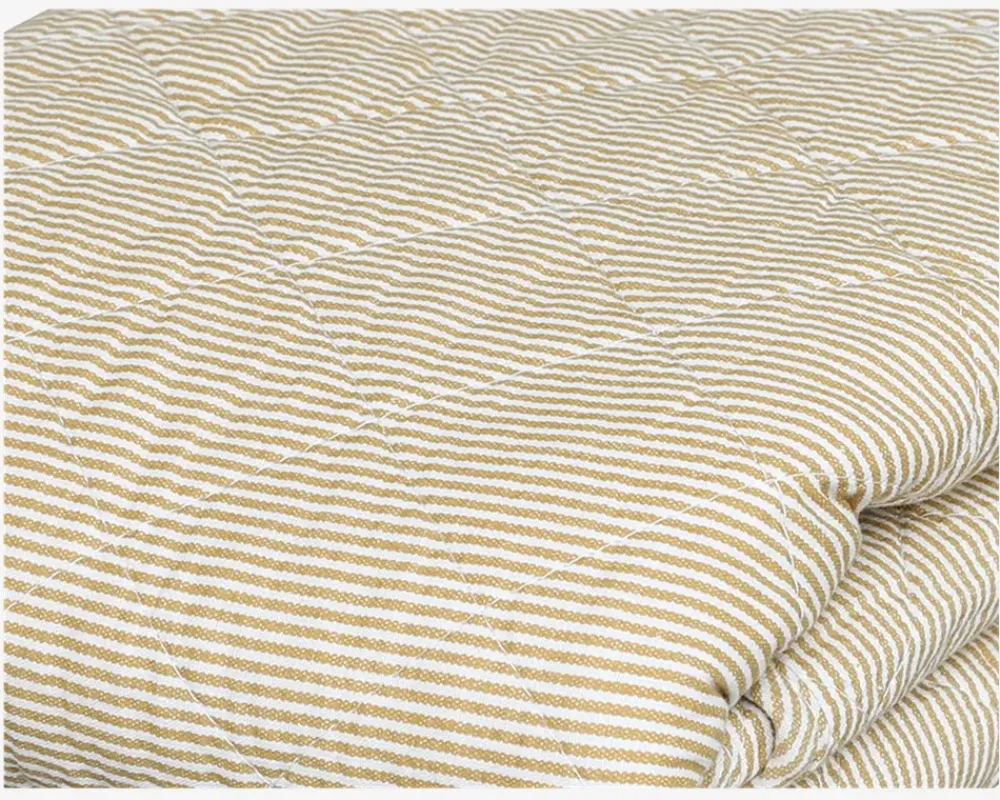 Dette quiltede sommerplaid er den perfekte følgesvend til de varme sommerdage og kølige sommeraftener. Med sine flotte sommermønstre tilføjer plaiden en farverig og livlig stemning til din udendørs eller indendørs oase. Den quiltede konstruktion giver både stil og funktionalitet, da den tilføjer tekstur og ekstra varme, når det er nødvendigt. Brug plaiden som et tæppe til picnic i parken, til at hygge sig på terrassen eller bare som et dekorativt element i dit hjem. Med dette quiltede sommerplaid kan du omfavne sommeren med stil.Det særlige ved dette tæppe er, at fyldet er lavet af genbrugsmaterialer, hvilket gør det til et miljøvenligt valg. Designet er udviklet i Danmark og afspejler den skandinaviske æstetik og kvalitet.• Mål i cm: L.180 x B.140• Vaskes ved 30°• Farve: Sennep