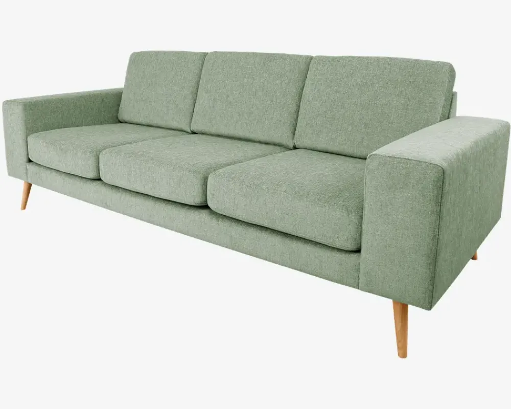 Sienna – design selv sofaserieSienna sofaserien er flotte og stilfulde sofaer med dejligt brede armlæn, samt skrå ben som giver sofaerne et flot og let udtryk. Her kan du vælge imellem 12 forskellige opstillinger samt over 100 forskellige stofbetræk eller i læder. Der kan vælges imellem sorte ben og eg natur ben. Så får du lige præcis den sofa, der passer til din dagligstue.Kvaliteten behøver du ikke tænke på – alle sædehynder i denne serie er lavet i en sandwich konstruktion bestående af formstabilt polyether skum og koldskum. Så ud over at få en sofa der passer lige til dine ønsker, så får du også en sofa i en rigtig god kvalitet, som holder de næste mange år.Her er vist en 3 pers. sofa med betræk fra stofgr. 1.• Design selv serie• Formstabilt polyether og koldskum i sæder• Faste ryghynder• Massiv træramme med nozagfjedre• Rigtig lækker siddekomfort• Mål i cm. B. 220 x D. 92 x H. 43/82