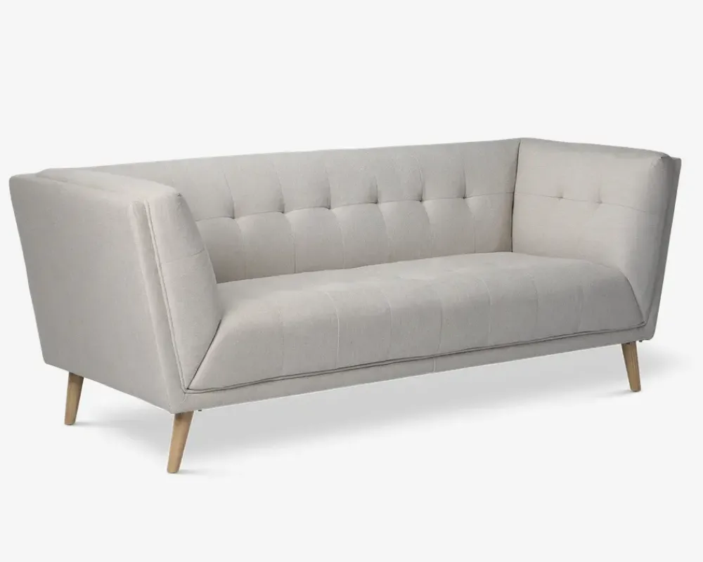 Designet på denne sofa er kendetegnet ved lige høje ryglæn og armlæn. Det giver sofaen et meget moderne look samtidig med at den har et twist af retro stilen. Monteret med kraftigt og slidstærkt møbelstof. Sofaen har posefjedre i sædet som giver en rigtig god siddekomfort og den har nozagfjedre i sæderammen som giver en rigtig god stabilitet. Denne sofa findes som her i grå og så fås den også i beige møbelstof. Og som både 3 pers. og 2 pers. Med naturfarvede træben. • Posefjedre i sæder• Nozagfjedre i sæderammen• Slidstærkt møbelstof• Fantastisk siddekomfort• Moderne retro look• Mål i cm: L.206 x D.83 x H.82/45