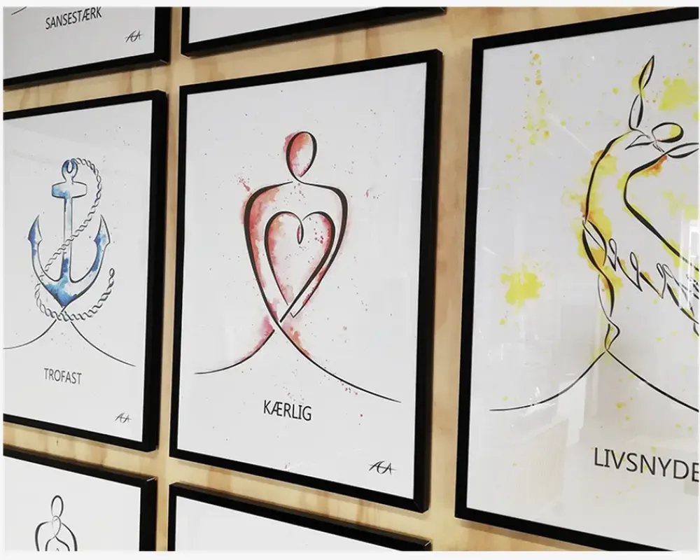 Plakater fra AE Art er en personlig gave til dig selv eller én, som du har kær. En gave, der kan gøre en forskel. AE Art’s kunststil – Braidline art – fletter symbolik med positivitet. Stregen fletter over og under sig selv i hele tegningen og forbinder symbolerne og betydningen. Alle plakaterne har symboler med meningsfuld fokus, i form af anerkendelse og værdsættelse. Plakaterne er inddelt i 3 forskellige kategorier: Egenskaber, interesse & hobby, relationer & særlige øjeblikke. Alle designs er håndtegnet af Amanda selv og derefter trykt på et lokalt trykkeri, der er certificeret.Udforsk de mange designs og find netop det symbol der skaber personlig værdi for dig, eller én som du har kær.A5 kortene er velegnede som et personlig kort, der kan vise din anerkendelse og værdsættelse hos modtageren. Et personligt alternativ til det klassiske kort. A5 kortene er også en dekorativ størrelse til at hænge på væggen, hvis man ønsker at kunsten ikke skal tage for meget fokus, men blot skal give et personligt udtryk. • Kategori: Egenskaber• Passer til ramme i cm: 15 x 21