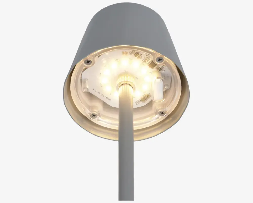 Diaz er en stilren bordlampe udført i metal med en højde på 21 cm og en diameter på 8 cm. Lampen har touch-funktion, så du nemt kan tænde, slukke og justere lyset med et enkelt tryk. Med IP44-klassificering er den derfor velegnet til både stuen og altanen eller som stemningslys i andre rum.