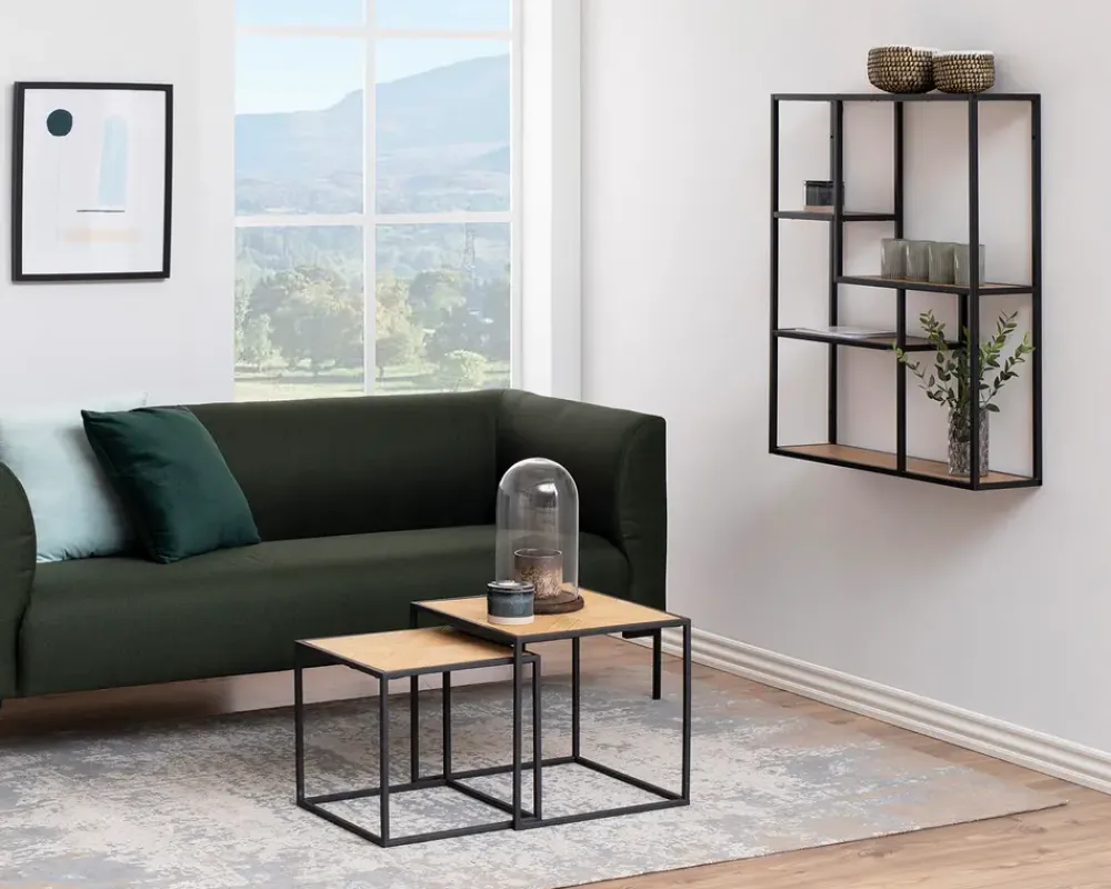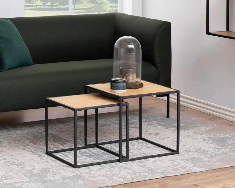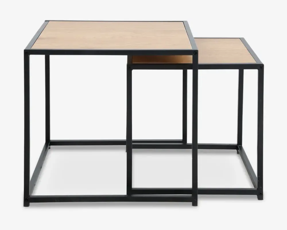Det gode gamle indskudsbord i en ny og moderne udgave. Dette bord har en overflade i vild eg kunstfiner, med sortlakeret metalstel. Passer rigtig godt de fleste steder uanset stil og farvevalg. Bordet har en stærk overflade som er meget rengøringsvenlig. Indskudsbordene leveres usamlet, men samles nemt.I denne serie kan der fås mange forskellige møbler, som gør det muligt at møblere de fleste rum i hjemmet med lige netop denne serie. Serien består af meget ”lette” møbler som kan give et enkelt og flot udtryk overalt i hjemmet. Flere typer sofaborde, tv-borde, reoler, serveringsvogne, skriveborde. Me denne serie er det nemt at indrette sig hyggeligt og praktisk på samme tid.• Det gode gamle indskudsbord i en ny udgave• Vild eg kunstfiner• Sortlakeret metalstel• Leveres usamlet, men samles nemt.• Mål i cm. Stort bord: B.50 x L.50 x H.45• Mål i cm. Lille bord: B.40 x L.40 x H.41,5[Klik her for at se hvordan du bedst passer på dit nye møbel](https://www.daells-bolighus.dk/mobelpleje)[Klik her for at se hvilke plejemidler vi har](https://publikationer.daells-bolighus.dk/prislister/guadian-plejemidler/#/)