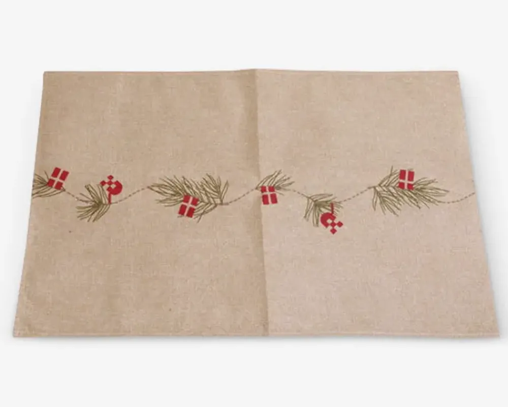 Julebordløber fra Det Gamle Apotek som skaber stemning med flagranke og gran. Se også julesokken i samme design.