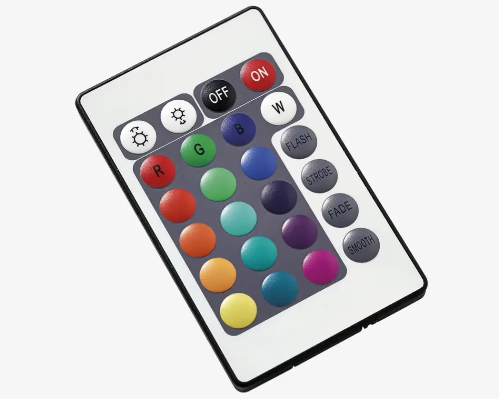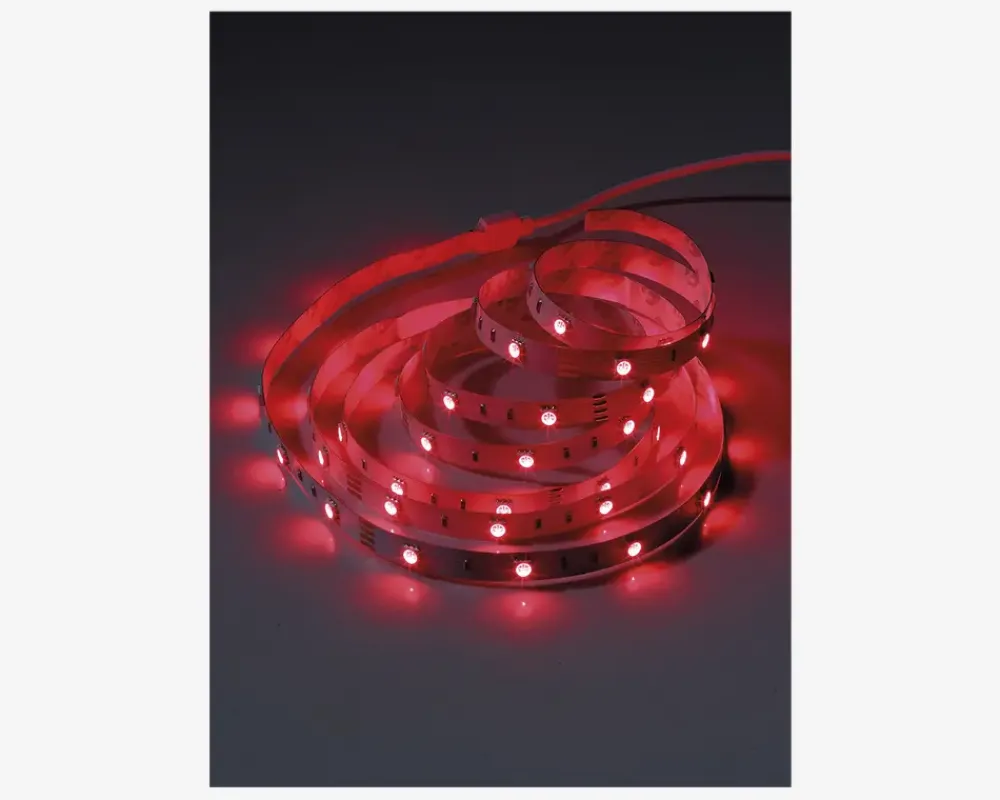 LED-strip med fjernbetjening, der kan skifte mellem 16 forskellige farver. Strip’en har selvklæbende bagside, som gør den nem at betjene og fastgøre.Anvend evt. strip’en bag tv’et, i klædeskabet eller i bogreolen.LED-strip’en har en levetid på 30.000 timer og der er mulighed for 10.000 gange tænd og sluk.