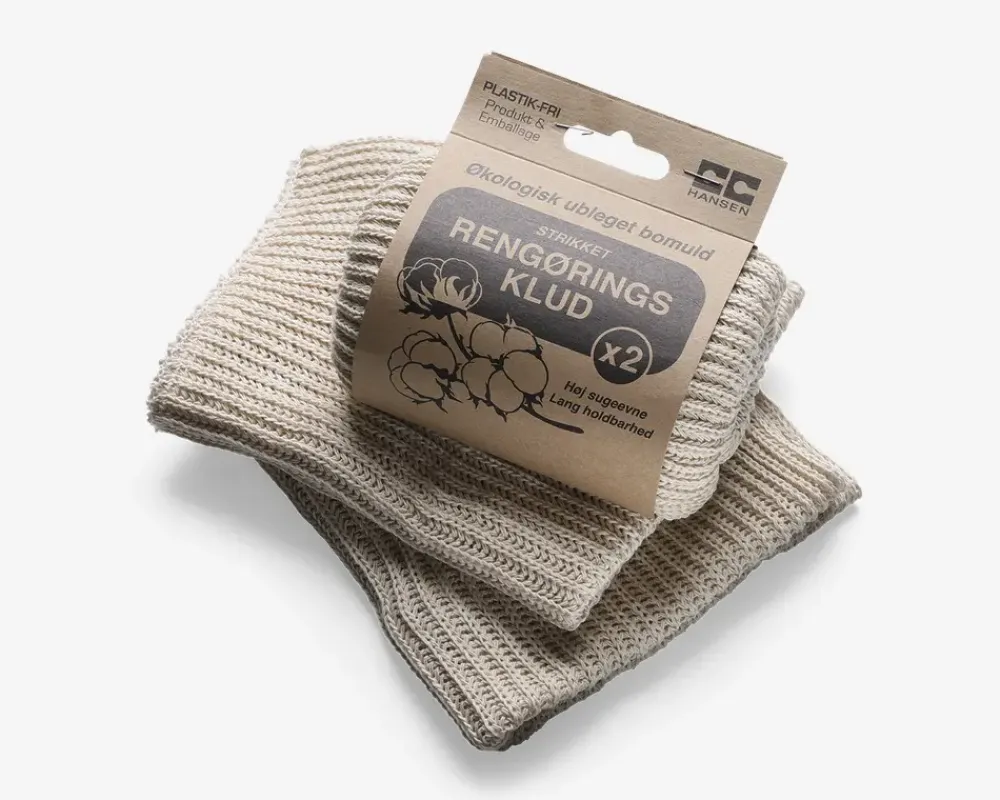 Rengøringsklude fremstillet af ubleget økologisk bomuld med en høj sugeevne, der gør dem ideelle til både køkken og badeværelse. De absorberer effektivt væske og snavs og leveres i en praktisk pakke med 2 stk., så du altid har en ekstra ved hånden.