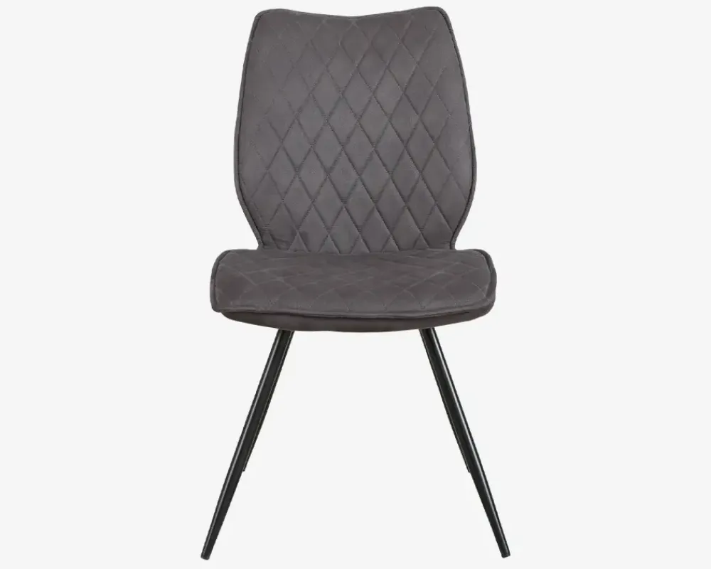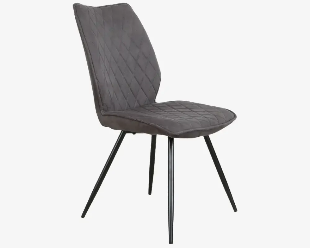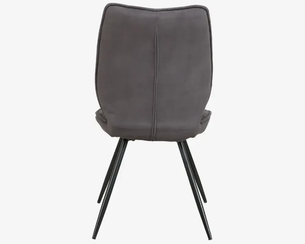Spisebordsstol i kraftig mørke grå mikrofiber, med en fantastisk siddekomfort. Stolen tilbyder med sin kraftige polstring, bløde stof og høje ryg, en virkelig god siddekomfort, som du vil glæde dig over når middagen bliver ekstra hyggelig og trækker ud. Spisestolen sælges i pakker af 2 stk., og det klassiske design, gør den velegnet til eksempelvis langborde som er oppe i tiden, når det gælder om at indrette køkkenet eller spisestuen.Spisebordsstolen kræver ingen vedligeholdelse, du du foretager rengøringen med en klud vredet op i rent vand. Ingen spisestuestole er egnet til at du vipper på dem, det kan skade konstruktionen og ødelægge stole. Stolene leveres usamlet, men samles nemt, hvis du følger den vedlagte samlevejledning.