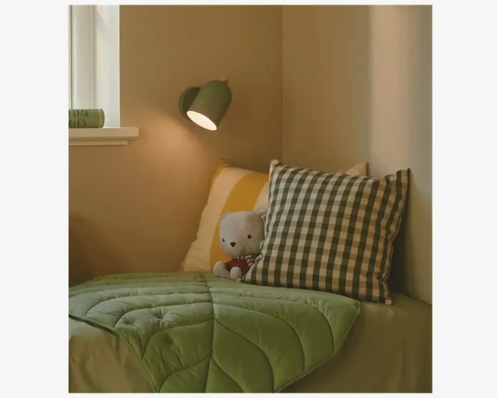 Gaston er en væglampe med et enkelt design, der kan placeres flere steder i hjemmet. Brug den for eksempel i soveværelset eller ved lænestolen som læselampe. Lampen fås i flere farver og er udstyret med en smuk trædetalje, der tilføjer et naturligt og elegant touch.
