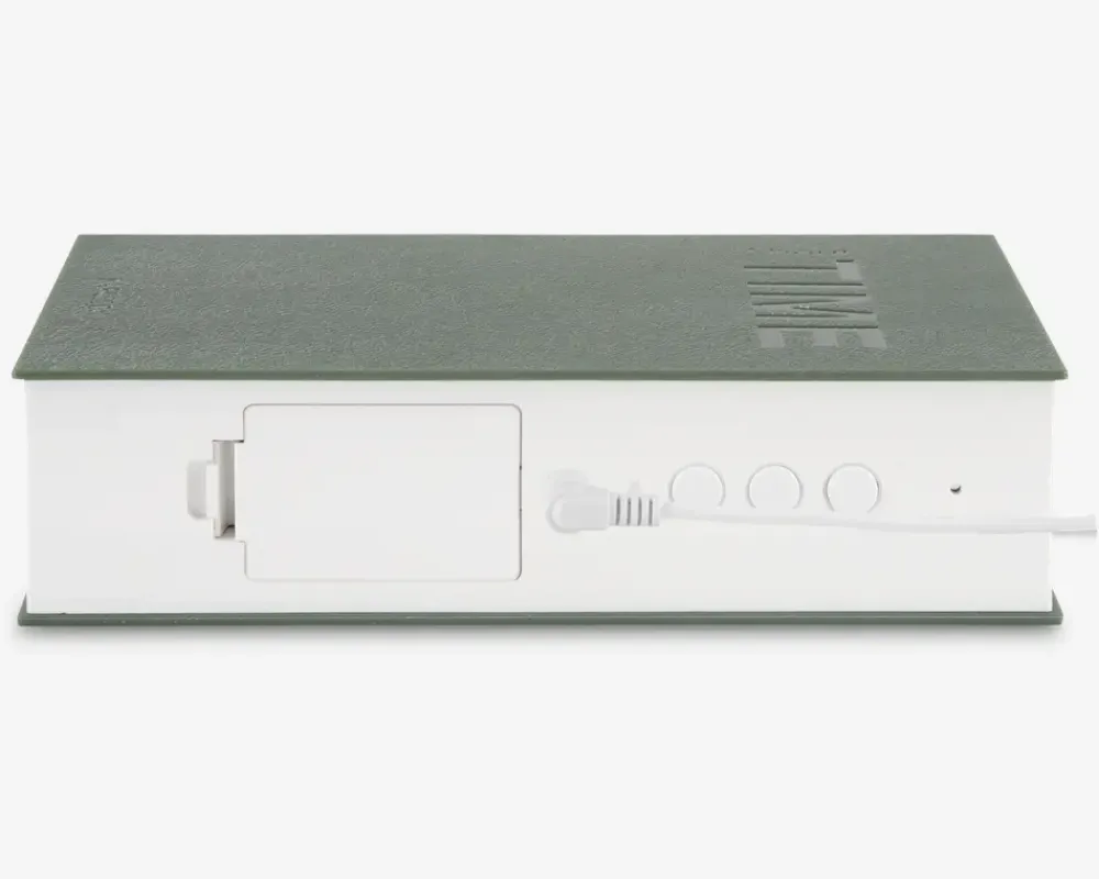 Vækkeur der ligner en bog og som samtidig kan vise klokken. Uret kombinerer funktionalitet med et minimalistisk design, der passer perfekt ind i soveværelset, kontoret eller andre rum i hjemmet. Med et tydeligt ur og pålideligt alarmfunktion hjælper det dig med at starte dagen til tiden. Perfekt til både natbordet og skrivebordet! Husk at tilkøbe 3xAAA batterier. Inklusiv USB kabel.