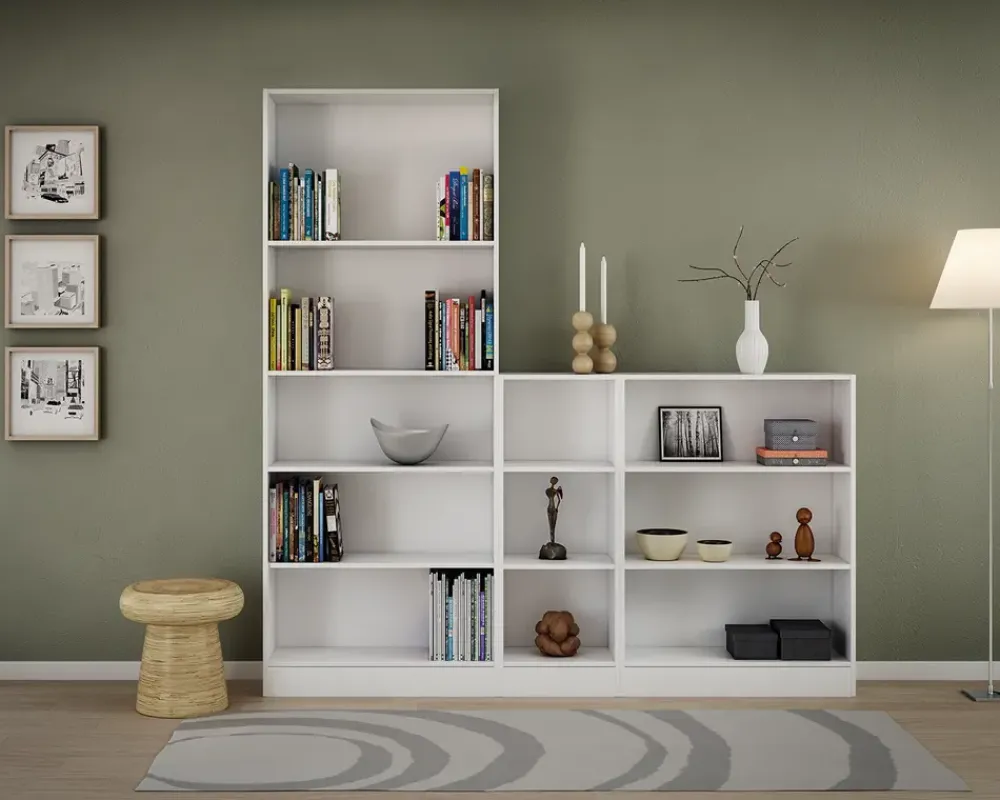 Basic er en serie af bogreoler som fremstilles i hvid og lys eg kunstfiner. Reolerne findes i 2 højder og i 2 bredder og kan sammensættes som man selv ønsker og har behov for. Dørene er flotte rammedøre som fås med ramme eller med glas.Bogreol i hvid.• Smart serie af bogreoler• Hvid og eg kunstfiner• Sammensættes efter egne ønsker og behov• Leveres usamlet men samles let• Mål i cm. B.79 x D.27 x H.107