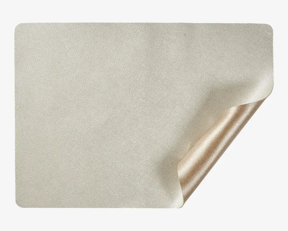 Dækkeservietter giver dig et smukt opdækket spisebord. Dækkeservietten giver borddækningen prikken over i’et og er samtidig med til at skåne bordet. Rengør nemt med en opvredet våd klud. Dækkeservietten har forskellig farve på hver side. • Mål i cm: H.33 x B.46• Farve: guld • Materiale: PVC