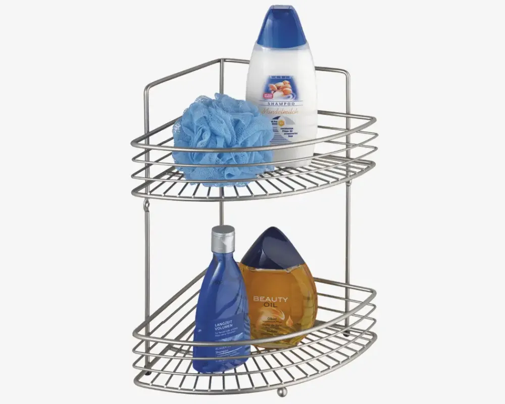 Det kan være svært at vide, hvor man skal gøre af shampoo, balsam og meget andet når man står med sæbe i håret. Med denne praktiske dobbelt brusekurv får du mere opbevaringsplads i brusekabinen til diverse badesæber. Hylden er udført i stål med kromlook og leveres inkl. skruer og plugs til montering.