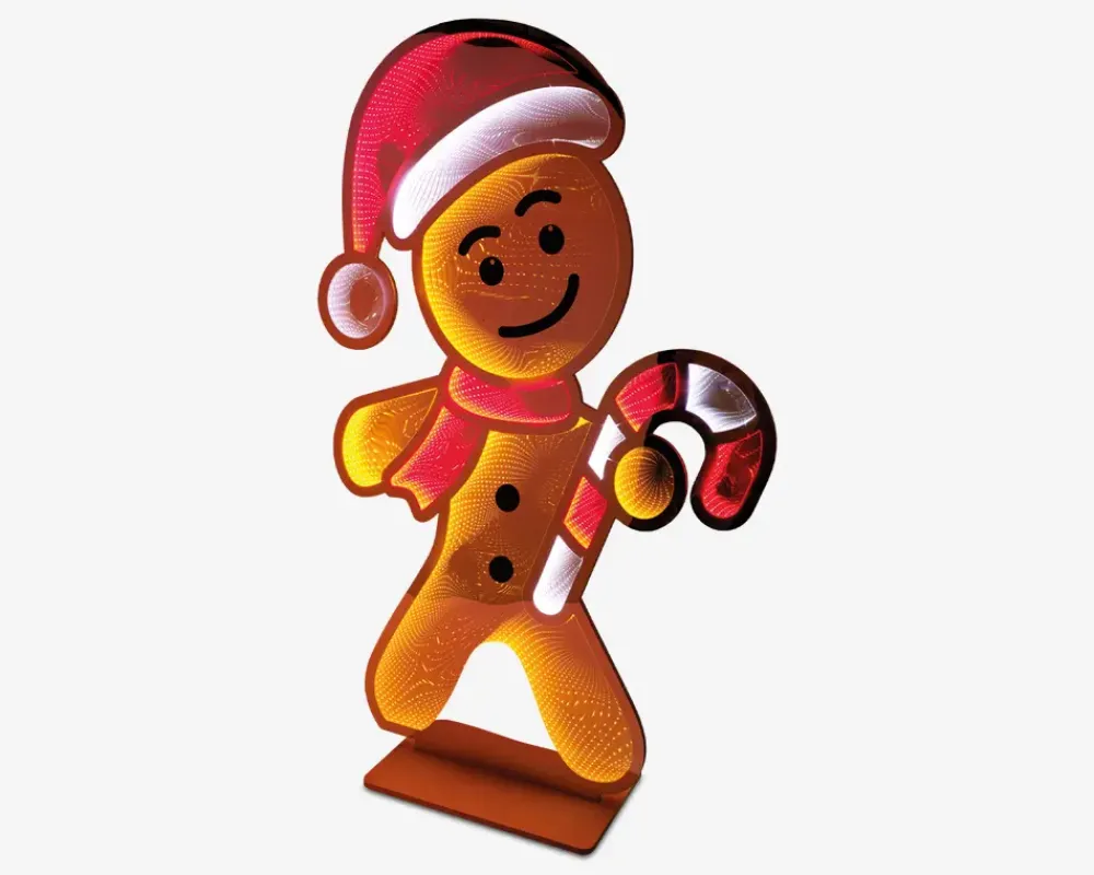 Dekorativ figur med infinity-effekt og farvede LED-lys, der skaber en livlig og festlig stemning der er perfekt til juledekorationen. Figuren har en imponerende højde på 180 cm og er beregnet til indendørs brug. Den leveres med en 5 meter ledning samt 12V transformer og er ideel som blikfang i stuen, på børneværelset eller som en del af en stemningsfuld juleopstilling.