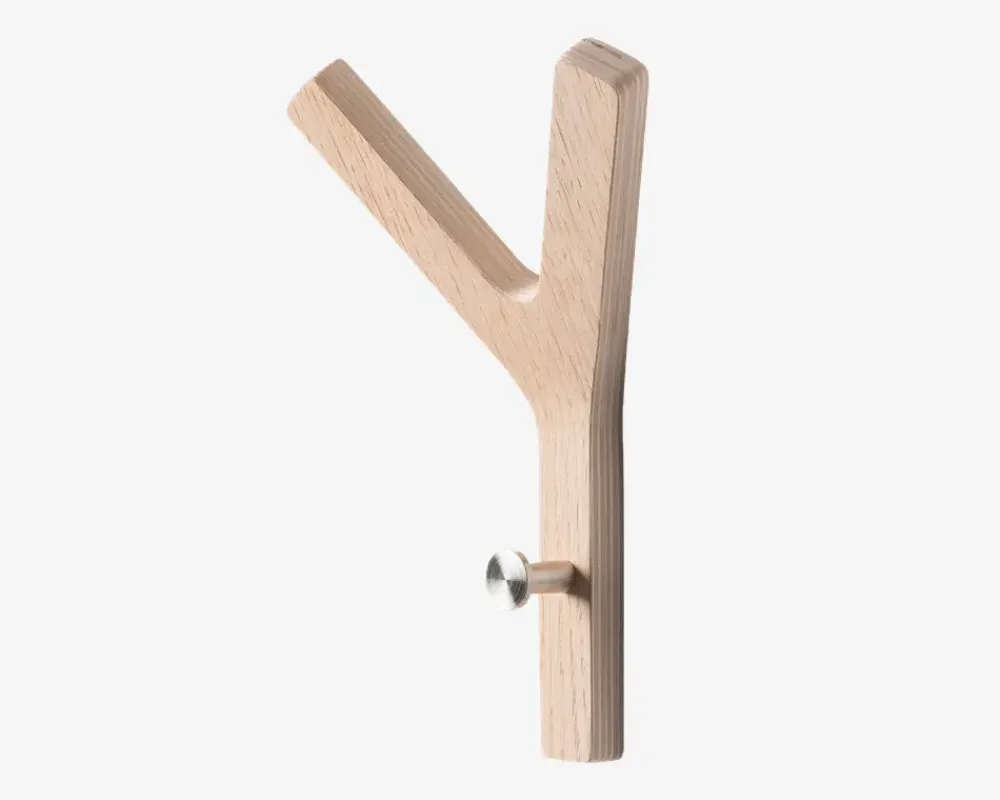 Denne mini Y-knage i formspændt finer er designet af Tom Stepp. Den lille knage har et minimalistisk og elegant design, der tilføjer et stilfuldt og moderne touch til dit rum. Med tre muligheder for at hænge tøj op, kan du nemt organisere dine yndlingsjakker, tasker eller tilbehør på en pladsbesparende måde. Knagen er lavet af holdbar finer og er let at installere, så du kan nyde dens praktiske funktion og smukke design på ingen tid. Brug den i entreen, soveværelset eller badeværelset for at holde dit tøj og tilbehør organiseret og let tilgængeligt. Denne mini Y-knage i formspændt finer er en smuk og funktionel tilføjelse til ethvert rum i dit hjem.• Mål i cm: H.21 x B.14 x D.7• Farve: Eg sæbe• Inkl. skruer og rawplugs. Vær opmærksom at disse er universale.