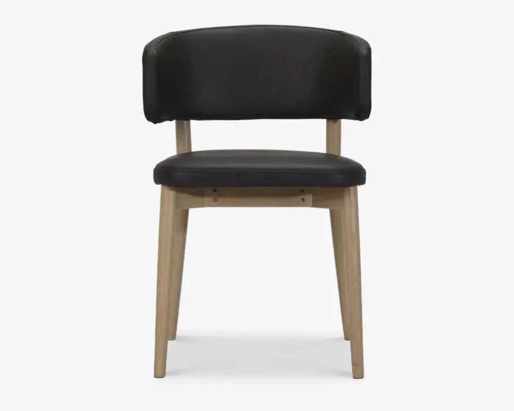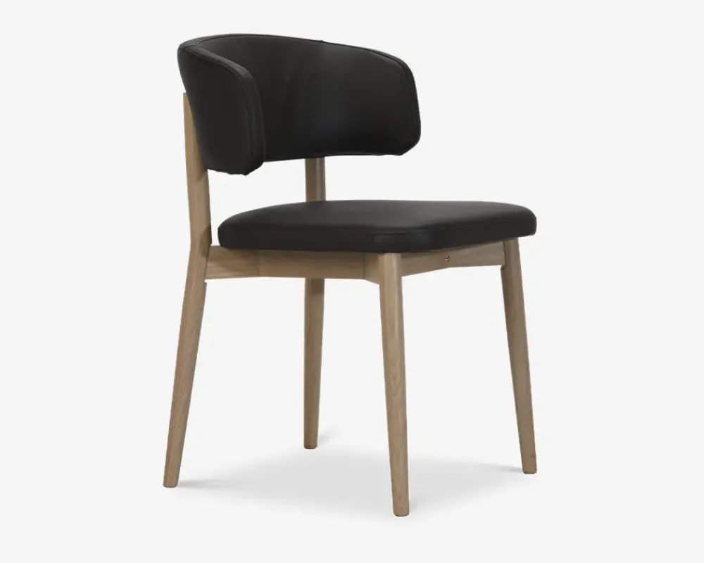 Spisestuestol fremstillet i massiv lakeret eg med sæde og ryg i læder. Stolen tilbyder en fantastisk siddekomfort, den kraftige polstring af sæde og ryg giver en god opretsiddende og behagelig siddekomfort, som du kan nyde hver dag. Stolen fremstår eksklusiv i både materialer og design, og vil stå flot sammen med et spisebord i eg.Spisestolen kræver minimal vedligeholdelse, selve stellet aftørres med en klud vredet op i rent vand, det samme gør sig gældende for sæde og ryg. Læderet kan efterbehandles efter behov. Stolene leveres færdig samlet, klar til brug.Højde til overkant armlæn: 74 cm