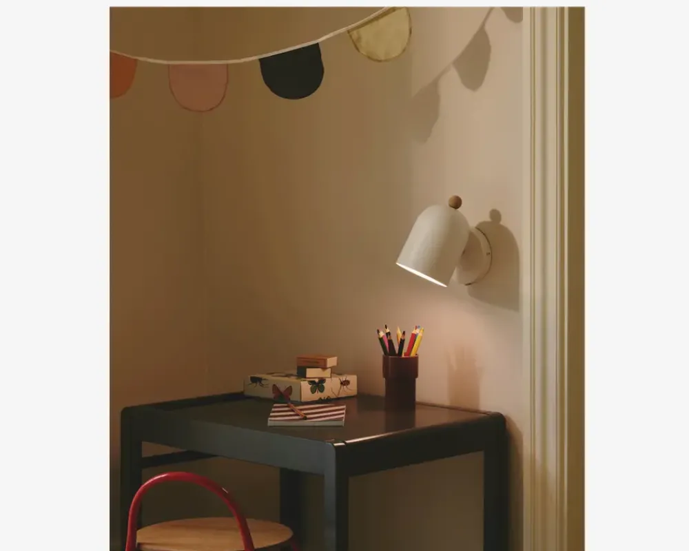 Gaston er en væglampe med et enkelt design, der kan placeres flere steder i hjemmet. Brug den for eksempel i soveværelset eller ved lænestolen som læselampe. Lampen fås i flere farver og er udstyret med en smuk trædetalje, der tilføjer et naturligt og elegant touch.