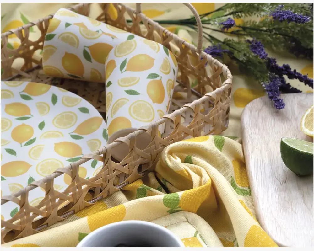 Bakke i melamin der er dekoreret med et friskt og sommerligt citronmotiv, der bringer en let og hyggelig stemning til bordet. Melamin er et let og holdbart materiale, der gør bakken ideelt til både hverdag og udendørs brug – perfekt til picnic, camping eller hyggelige stunder i haven.
