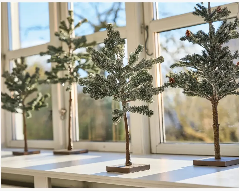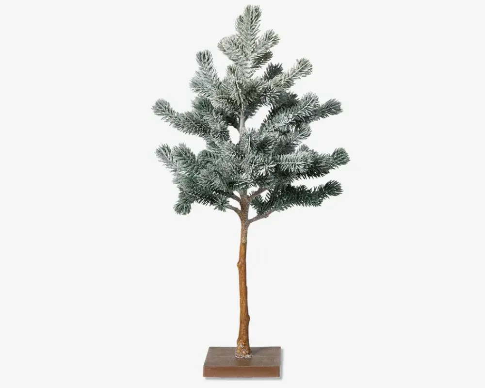 Opstammet grantræ med sneeffekt og potte der måler H.48 cm. Træet er dekorativt, bringer en hyggelig stemning ind i hjemmet og kan placeres flere steder i hjemmet.