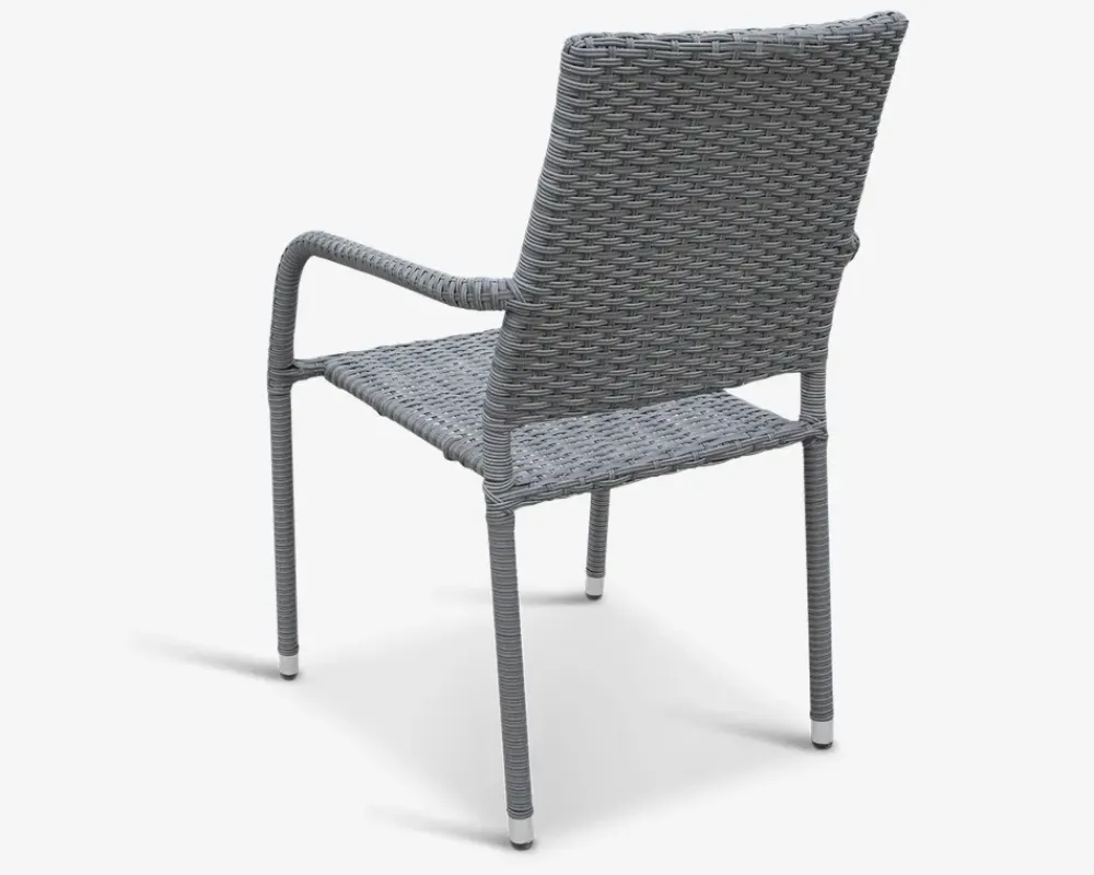 En prisbillig stabelstol som tilbyder en god siddekomfort. Stellet er fremstillet i pulverlakeret stål omviklet med grå mix polyrattan. Havestolen sælges ekskl. hyndeStolen kan stables og kan kombineres med alle vores borde i vores sortiment. Det er kun din fantasi der sætter grænsen.• Sortlakeret stålstel• Grå mix Polyrattan• Vedligeholdelsesfri• Mål i cm: H.87 x B.64 x D.54• Siddehøjde: 44 cm + en eventuel hynde• Hvis stellet bliver skrammet bør eventuelle afskalninger dækkes• Vi anbefaler at stolen opbevares overdækket uden for sæsonen