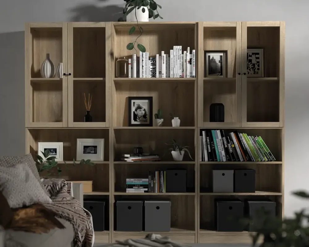 Basic er en serie af bogreoler som fremstilles i hvid og lys eg kunstfiner. Reolerne findes i 2 højder og i 2 bredder og kan sammensættes som man selv ønsker og har behov for. Dørene er flotte rammedøre som fås med ramme eller med glas.Ekstra hylder til bred bogreol i lys eg• Smart serie af bogreoler• Hvid og lys eg kunstfiner• Sammensættes efter egne ønsker og behov• Leveres usamlet men samles let• Mål i cm. B.75