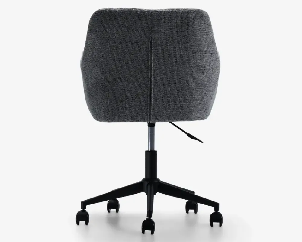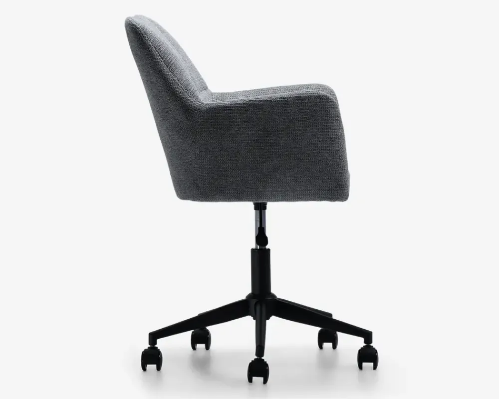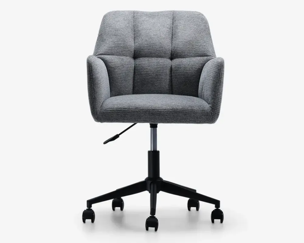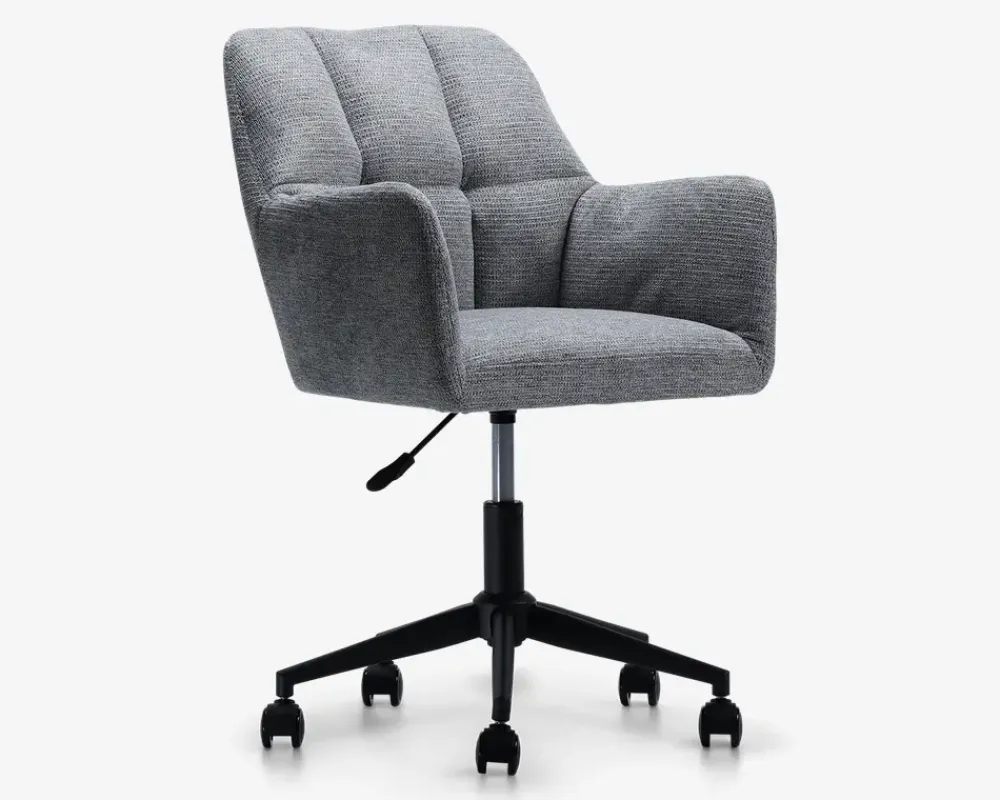 Flot kontorstol med armlæn hvilket giver en rigtig god siddekomfort. Stolen er monteret med blødt og slidstærkt møbelstof i moderigtige farver, som passer til en del af vores sofaer. Dette giver muligheden for at få en bedre sammenhængende dagligstue med stol og sofa i samme farver. Mekanismen er gasautomatik for højderegulering og har en flot sortlakeret metalfod og gummihjul, så de ridser trægulvet mindre. Fås i beige og i grå.• Kontorstol med armlæn• Blødt og slidstærkt møbelstof stof på ryg• Gasautomatik for højderegulering• Sortlakeret metalfod og gummihjul• Højderegulerbar fra 42 – 50 cm• Leveres usamlet men samles let• Mål i cm. B.56 x D.56 x H.79/87