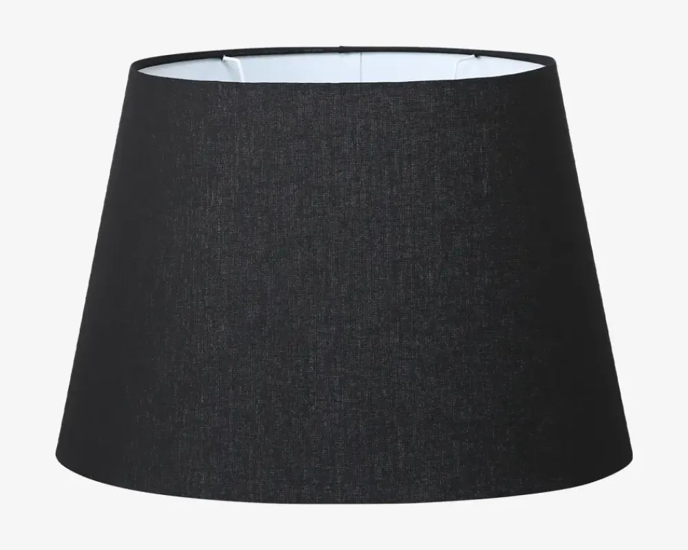 Enkel og klassisk oval lampeskærm i bomuld, der passer perfekt ind i ethvert hjem takket være sin neutrale farve og klassiske design. Skærmen passer til en E27 fatning.• Mål i cm: Ø.35• Farve: sort • Materiale: bomuld