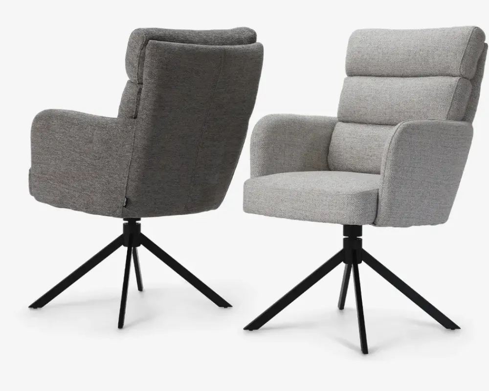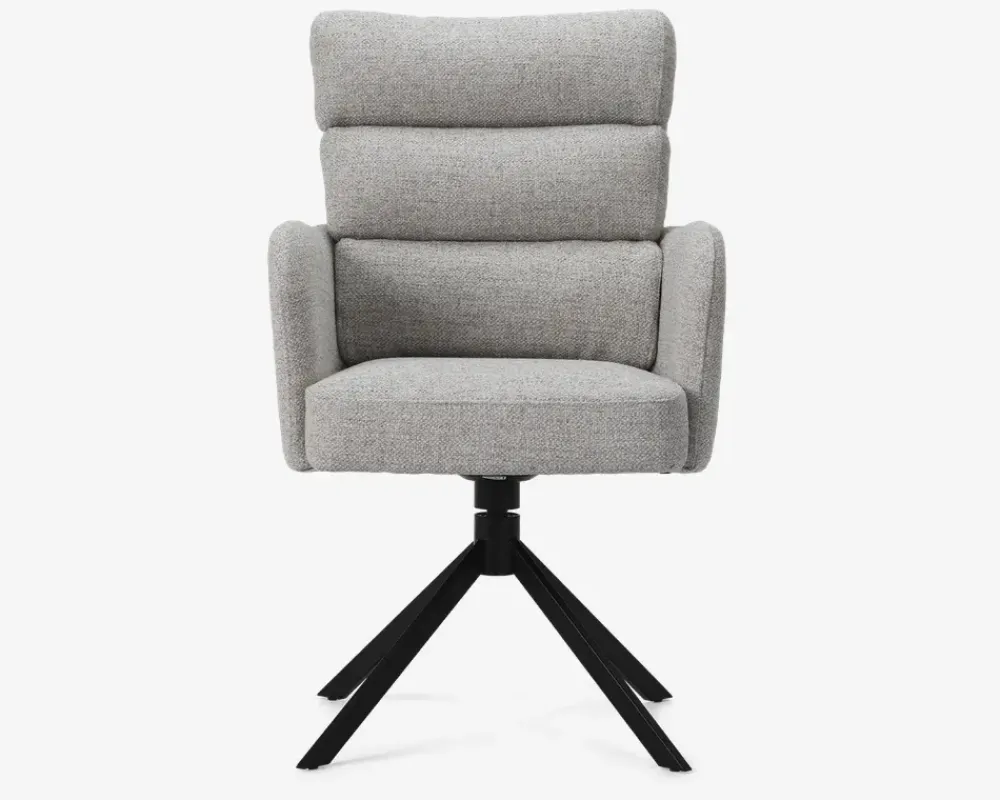 Denne spisestuestol er en del af vores Daells Collection. Daells Collection er en serie af møbler som vi er specielt stolte af at kunne præsenterer. De udmærker sig ved at være en fremragende kvalitet, flot design og gode til prisen.Spisestuestolen her er med armlæn, og stellet har 360° rotation og swing back. Swing back betyder at stolen altid vender retur til det oprindelige udgangspunkt, når du rejser dig, og derfor altid vil stå flot ved spisebordet. I sædet er spisestolen fremstillet med posefjedre, som giver en helt fantastisk siddekomfort, som understøttes af den bløde polsteret ryg. Stolen er højrygget og du vil have svært ved at rejse dig fra spisebordet. Du sidder så godt så festen kan fortsætte ved spisebordet.Stoffet er et kraftigt møbelstof som findes i 2 farver, beige og grå. Spisestolen kræver ingen vedligeholdelse, og samles nemt med 4 skruer. Spisebordsstolen sælges i pakker af 2 stk.Højde til overkant armlæn: 67 cm