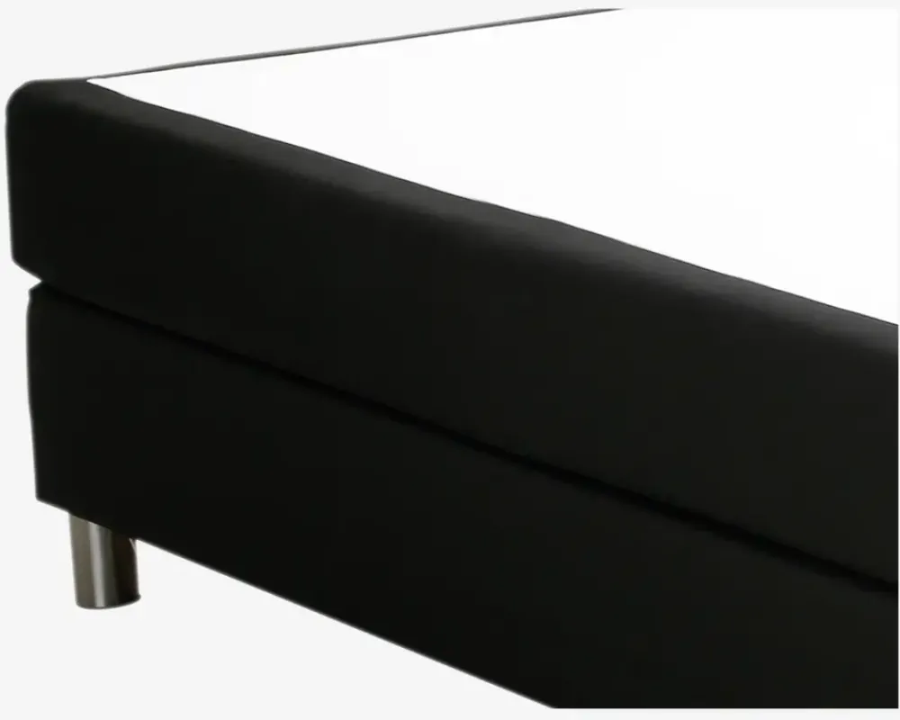 Dansk produceret continentalseng i god kvalitet. Denne Continentalseng består af to baser i ventilerede polyetherskum på en ramme af massiv fyrretræ, som giver et godt fast underlag, til de medfølgende springmadrasser som er bygget op med et fjederindlæg der har 180 stk. posefjedre pr. m². De 180 posefjedre er individuelt indpakket, og kan derfor alle deltage i understøtningen af din krop mens du sover. De 2 springmadrasser er placeret i et stort betræk, på den måde undgår du den irriterende revne imellem madrasserne. De 2 springmadrasser bør vendes 3-4 gange årligt, for både at forlænge levetiden, og samtidig for at give dig den optimale støtte til kroppen.Continentalsengen har en fast opspænding af springmadrasserne, og dette kombineret med de ventilerede skumbaser, betyder at du får en fast seng, som mange foretrækker. Sengen bør kombineres med en topmadras i enten latex eller polyetherskum, en latex topmadras vil give mere topkomfort, mens polyether topmadrassen vil virke fastere. Hvilken topmadras du vælger er op til dig, men latex topmadrassen vil deltage mere aktivt i understøttelse af kroppen, og den vil også holde både form og fleksibilitet meget længere. Betrækket er i kraftig sort møbelstof, på både baser og springmadrasser. For at gøre Continentalsengen komplet, skal du tilkøbe to sæt ben, to sæt hjørnebeslag, samt en topmadras efter dit valg. Continentalsengen er ikke velegnet til at benytte i en sengeramme, da den er højere end både almindelige madrasser og boxmadrasser.• Nederst: To ventilerende baser i polyether skum• Øverst: 180 posefjedre pr. m²• Mål i cm: H.40 x B.180 x L.200• Sælges ekskl. topmadras og bensæt• Hjørnebeslag til bensæt: 11651 (Der skal bruges 2 sæt)• Leveres samlet.• 15 års garanti mod stel og fjedrebrud