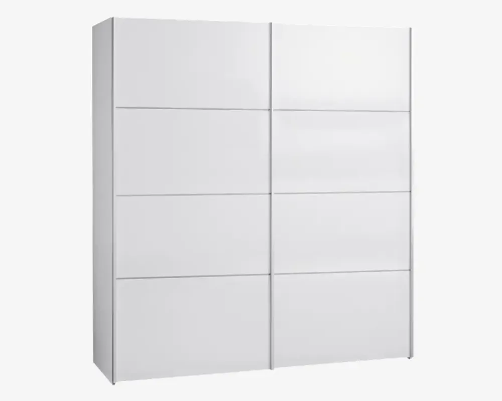 Verona er en serie af garderobeskabe som er 201,54 cm høje. Serien består af skabe i 3 forskellige bredder, som findes med låger i flere farver. Verona garderobeskabene har som standard indretning 1 hylde samt 1 bøjlestang i hvert rum.Dette Verona garderobeskab måler H.201,54 x B.122,1 x D.64 cm, og har 2 skydedører som hver består af 4 paneller. Skabet er opdelt i 2 lige store rum som måler 60 cm i bredden, og begge indeholder 1 hylde samt en bøjlestang. Skabet er velegnet med standard indretningen, hvis du har meget tøj der skal hænge på bøjler. Hvis du ønsker kan der tilkøbes ekstra hylder som naturligvis kan placeres i den side du ønsker. Ekstra hylderne sælges i pakker af 3 stk. og er inkl. hyldebærer. Du har også mulighed for at tilkøbe en skuffesektion med 3 skuffer, her skal du være opmærksom på at skuffesektionen ikke fylder hele rummet, hvis den gjorde ville skufferne ikke kunne åbnes, på grund af skydelågerne. Endelig har du også mulighed for at tilkøbe dørdæmpersæt, så døren lukkes langsomt og eksklusivt.Vi lagerfører dette skab i 2 farver som vist her i hvid/hvid, men også i sort/sort, vi kan derfor altid tilbyde hurtig levering af disse 2 farver. Derudover kan vi tilbyde hurtig levering af skabet i andre størrelser i begge farver, du finder alle de lagerførte variationer her på vores hjemmeside.• 2 hylder og 2 bøjlestænger• Fås i andre størrelser og farver• Mål i cm: H.201,54 x B.122,1 x D.64• 3 stk. ekstra hylder: Varenr. 58179• Skuffeindsats m/ 3 skuffer: Varenr. 80263• Leveres usamlet