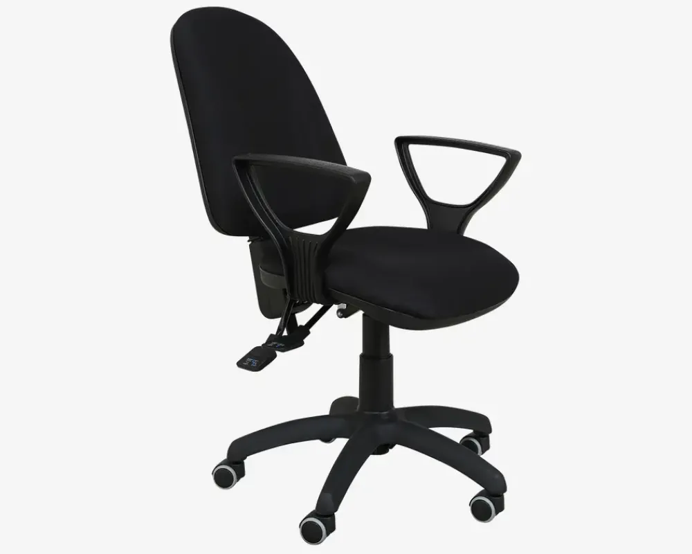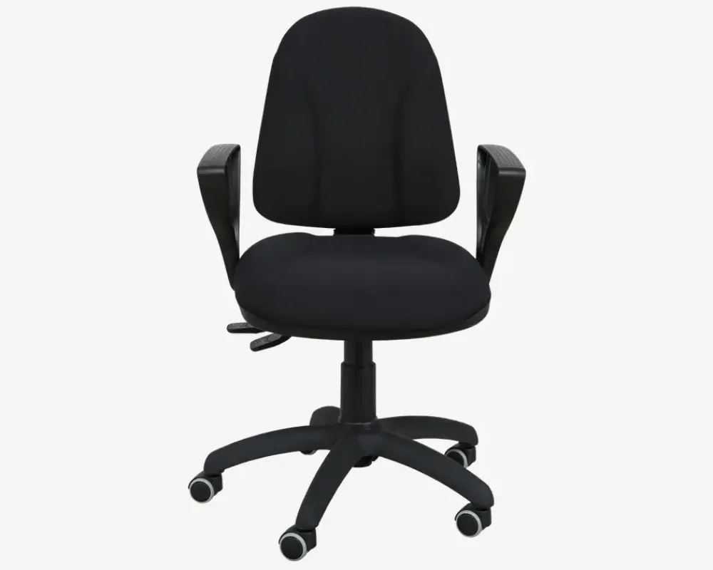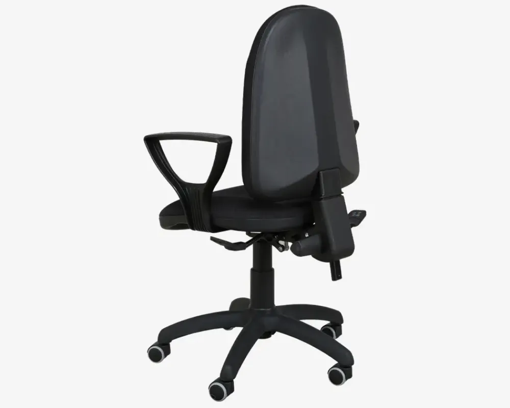 Kontorstolen her er designet og fremstillet til kontorbrug eller lidt mere krævende hjemmebrug. Kontorstolen har et ergonomisk udformet ryglæn med fremhævede sidestøtter, som giver god støtte til ryggen. Ryglænets højde og hældning kan justeres under sædet. Kontorstolen har justerbar sædehøjde med gaspumpe. Sædet er lavet af kraftig krydsfiner, ergonomisk polstret, hvor de formede ekstra sidestøtter giver ekstra komfort, når du sidder i stolen. Stolen har gummihjul, som er velegnet til hårde gulve. Stof i vandafvisende polyester. Stolen har ASY funktion, som betyder, at sæde og ryglæn kan bevæge sig uafhængigt af hinanden. • Ergonomisk udformet sæde og ryglæn• Formstabilt polyetherskum• Justerbar sædehøjde med gaspumpe• Gummihjul velegnet til hårde gulve• Vandafvisende polyester stof• Sædehøjde i cm. H.43-55• Mål i cm. B.48 x D.46 x H.97-109