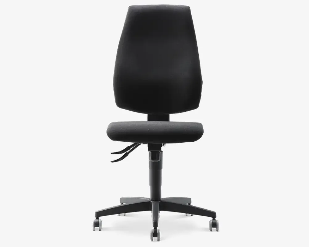 Den klassiske kontorstol med høj ryg er med en kraftig polstring med en behagelig og velkendt siddekomfort. ST 20 har forskellige indstillingsmuligheder som justering i højden med en trinløs gaslift, mulighed for at låse ryggen i ønsket position, tilt funktion som kan justeres efter vægt (gyngefunktion). Ryglæn med hældning og synkronmekanisme med spændingsjustering, trinløs lås bar. Med en synkron mekanisme, hvor man læner sig mod ryglænet, følger ryglænet og sædet kroppens bevægelse. Det sikrer en individuel tilpasning for optimal komfort. Med sit elegante design og de bløde, ergonomisk formede polstringer giver ST 20 både støtte og en god siddeoplevelse. Bemærk især det komfortable flade sæde med god støtte i knæleddet. Synkronmekanisme med spændingsjustering, trinløs lås bar. Synkron mekanisme giver mulighed for at læne sig bagud uden at løfte benene fra gulvet. Kan låses i faste positioner.Høj ryg og sæde med optimal ergonomisk støtte.En klassisk kontorstol i høj kvalitet, som holder længe.Mulighed for at tilkøbe justerbare og ergonomisk armlæn.Testet til brug i 8 timer dagligt og en vægt på 110 kg• Ergonomisk og funktionel• Formstabilt polyetherskum• Justerbar sædehøjde med gaspumpe• Gummihjul velegnet til hårde gulve• Synkron mekanisme• Vandafvisende polyester stof• Sædehøjde i cm. H.42-55• Mål i cm. B.48 x D.48 x H.104-115