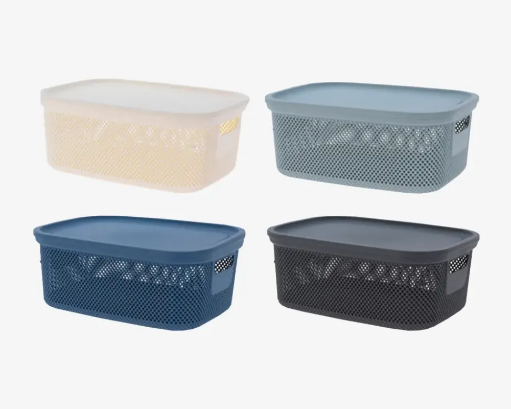 Opbevaringsboks med låg der er gode til at organisere og skabe orden. Kurvene kommer i flere størrelser og er oplagt til opbevaring af f.eks. børnenes legetøj, strikketøj, kontorartikler og meget mere. Bemærk at de kommer assorteret, købes enkeltvis og at der ikke kan vælges farve ved køb i webshoppen.• Mål i cm: H.15 x L.38 x B.28,5• Materiale: plast