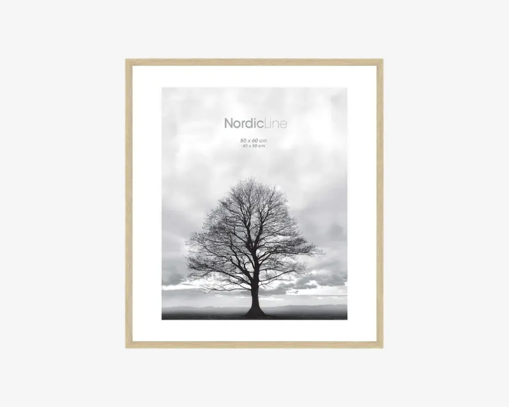 Flotte klassiske rammer i minimalistisk design, som er nemme at inkorporere i alle stilarter, da de har et simpelt design. Rammerne kan evt. kombineres med andre rammer fra vores sortiment, for at skabe blikfang til din kunst.Rammen findes i flere mål, så du kan finde netop den ramme du søger.• Mål i cm: H.60 x B.50 • Farve: Eg• Materiale: Massiv fyrretræ med ege folie/Glas