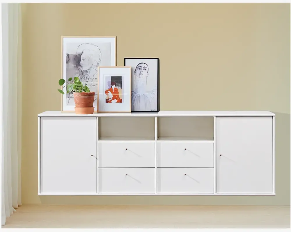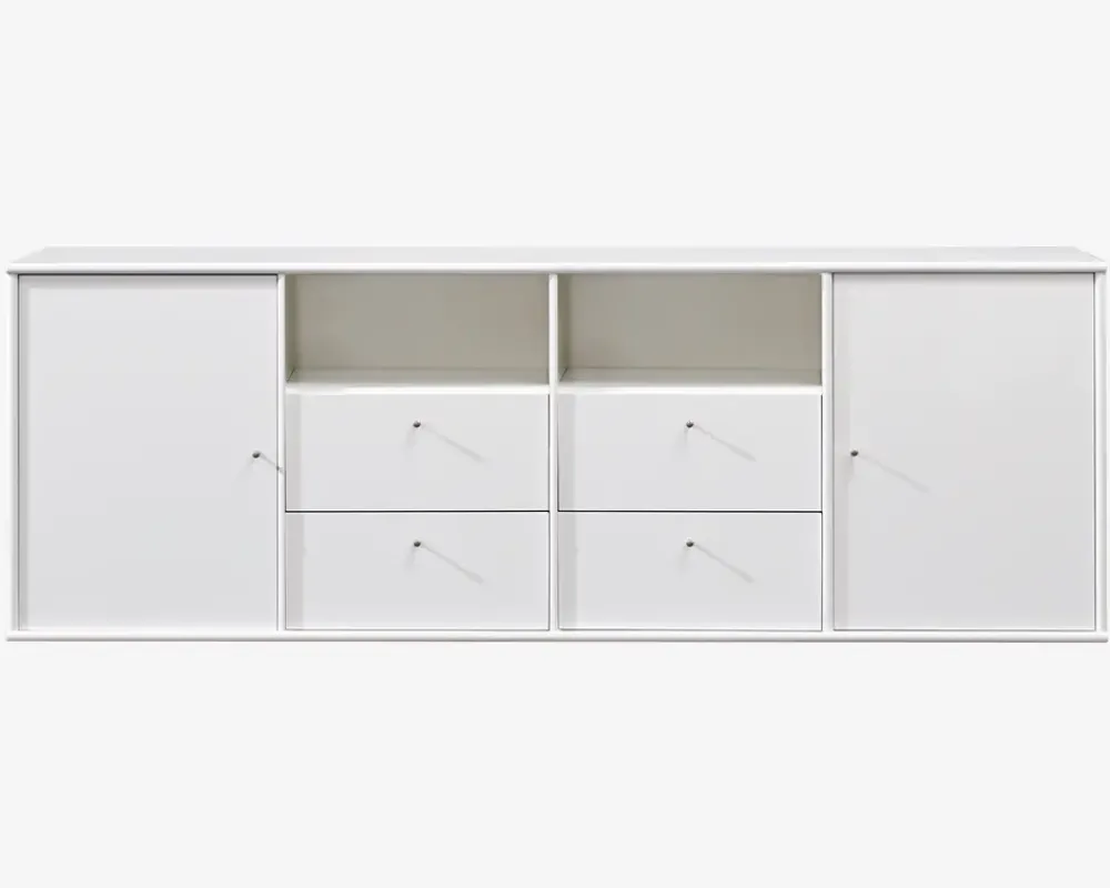 Den kendte reol Mistral reol, produceret af Hammel Møbelfabrik i Danmark. Kvaliteten er helt i top. Reolen kan kombineres helt efter eget ønske. Fås i mange farver og træsorter. Kom ind i butikken og se vores kæmpe udstillinger hvor vores sælgere står klar til at hjælpe jer med at sammensætte præcis den reol der passer til dig. Som noget helt nyt lagerfører vi nu enkelte opstillinger, som sælges til ekstraordinære faste lave priser. Her er et reolmodul i 4 sektioner med 2 døre og 4 skuffer i snehvid. Dette modul kan hænges på væggen eller der kan tilkøbes ben så det kan stå på gulvet. Gå ind på deres tegneprogram, hvor du kan sidde og lege med din nye reol.• Mistral reol i 4 sektioner• Produceret i Danmark• Kvaliteten er i top• Hvidlakeret• Leveres samlet. Kun døre og skuffer skal monteres• Mål i cm. B. 176,2 x D. 42 x H. 60,8