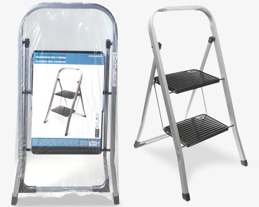 Praktisk stige der nemt kan klappes sammen så den ikke fylder. Kommer i 2 forskellige højder og er lavet i metal.