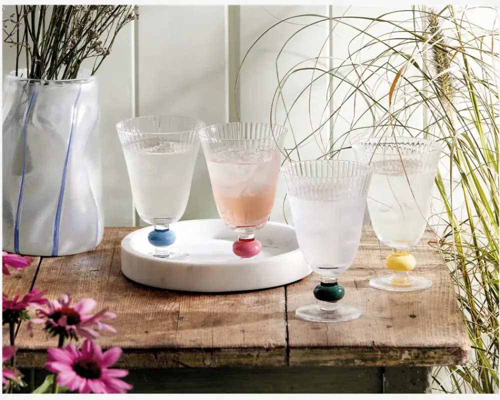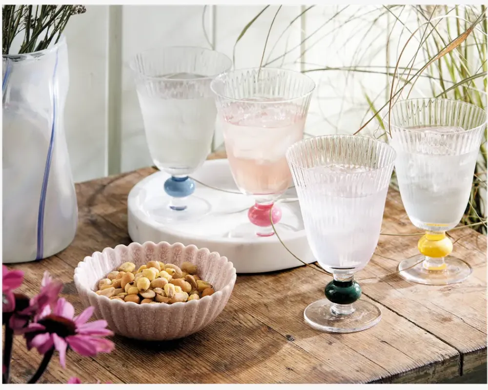 Vinglas med farvet detalje der kan pynte fint på et opdækket bord. Med sit anderledes udtryk vil glasset skabe en personlig stemning og dermed være Ideel til at pifte stemningen op ved enhver sammenkomst.
