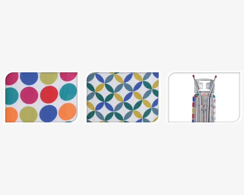Klassisk dampstrygebræt med forskellige bomuldsbetræk. Derudover er der mulighed for at justere højden.Bemærk at man ikke kan vælge betræk ved online køb.