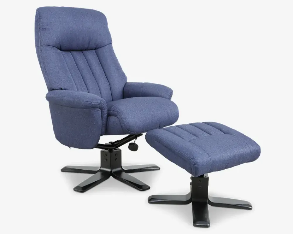 Flot og klassisk drejestol inkl. fodskammel. Stolen har både dreje og vippefunktion som manuelt kan reguleres i hårdhed efter eget ønske. Stolen har koldskum i sædet hvilket sikrer dig en rigtig god sidde komfort samtidig med lang holdbarhed i sædet.Stolen er monteret slidstærk møbelstof. Flot massiv sortlakeret træfod.• Inkl. Fodskammel• Dreje og vippefunktion• Slidstærkt møbelstof• Koldskum i sædet• Dejlig siddekomfort• Mål i cm: B.78 x D.85 x H.49/110