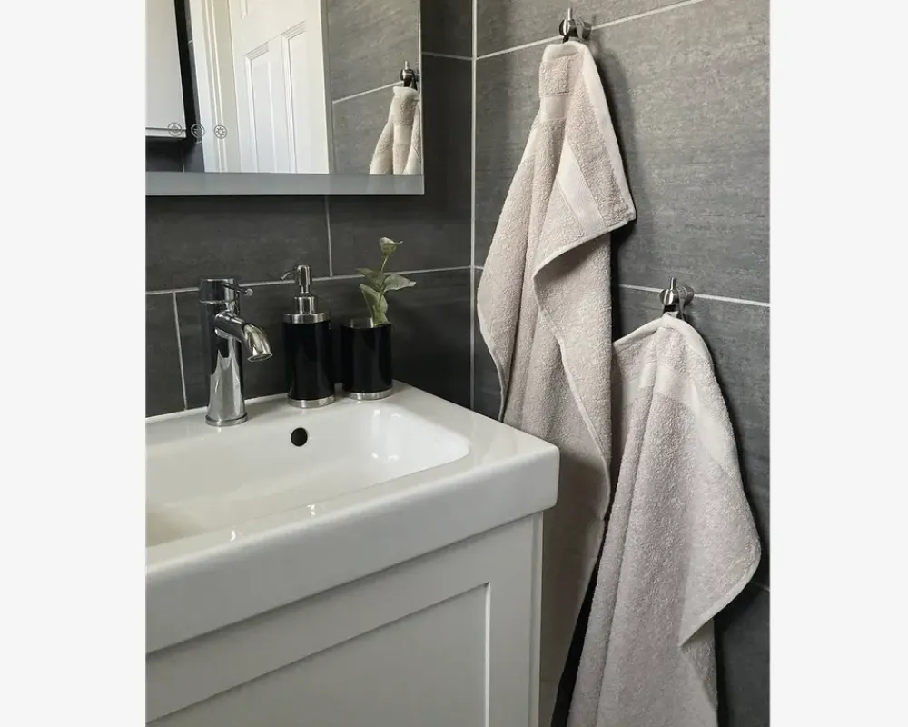 Dette håndklæde i bomuld kommer i et enkelt design og er en skøn tilføjelse til badeværelset. Tåler vask ved 60°C. 550g/m2. Kommer i flere varianter. Tip:Et godt tip. Før du tager dit nye håndklæde i brug, så læg dem i kold vand i 24 timer, inden du vasker dem første gang. Dette giver en bedre suge effekt, da bomuldsfibrene åbner sig. Du kan evt. tilføje lidt eddike i det kolde vand der gør, at eddiken binder farven til bomulden, så håndklæderne holder bedre på farven.Vi anbefaler ikke brug af skyllemiddel når du vasker håndklæder, da der dannes en hinde på bomulden, der foringer håndklædernes suge- og tørreevne.