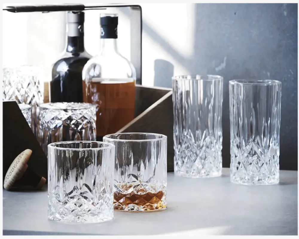 Harvey er en serie af moderne elegance til hverdagspriser. Aida har skabt et elegant mønster til glassene, inspireret af elegant facetslebet krystalglas. Dæk et flot spisebord til både fest og hverdag, som tåler op til 55° maskinvask.