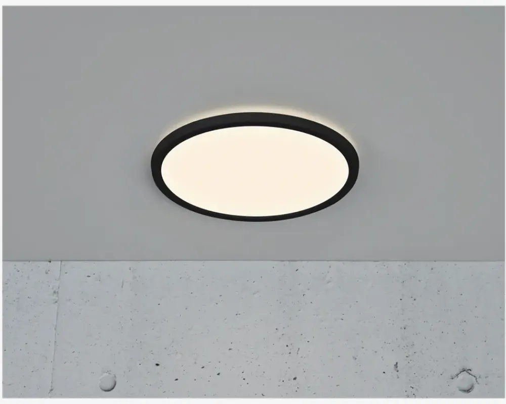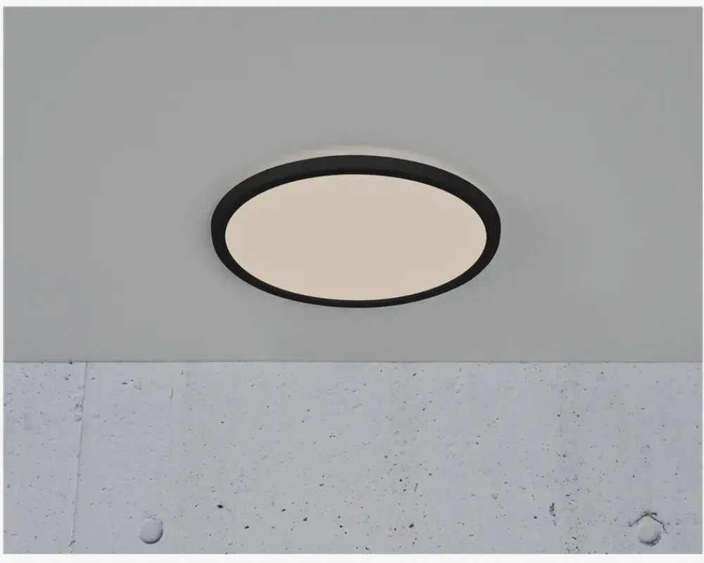 Diskret plafond i et klassisk og tidsløst design, som er ideel til rum som f.eks. entré, bryggers eller vaskerum. Lampen kommer med et indbygget 3-step dæmpning, som gør det nemt at justere lysstyrken. Lampen kommer med IP54, hvilket gør den ideel til vådrum. • Mål i cm: H.2,3 x Ø.29,4• Farve: Sort• Materiale: Plast• Lumen: 1600• Kelvin: 3000/4000• Levetid i timer: 30.000• Integreret LED 14,5 watt• IP54