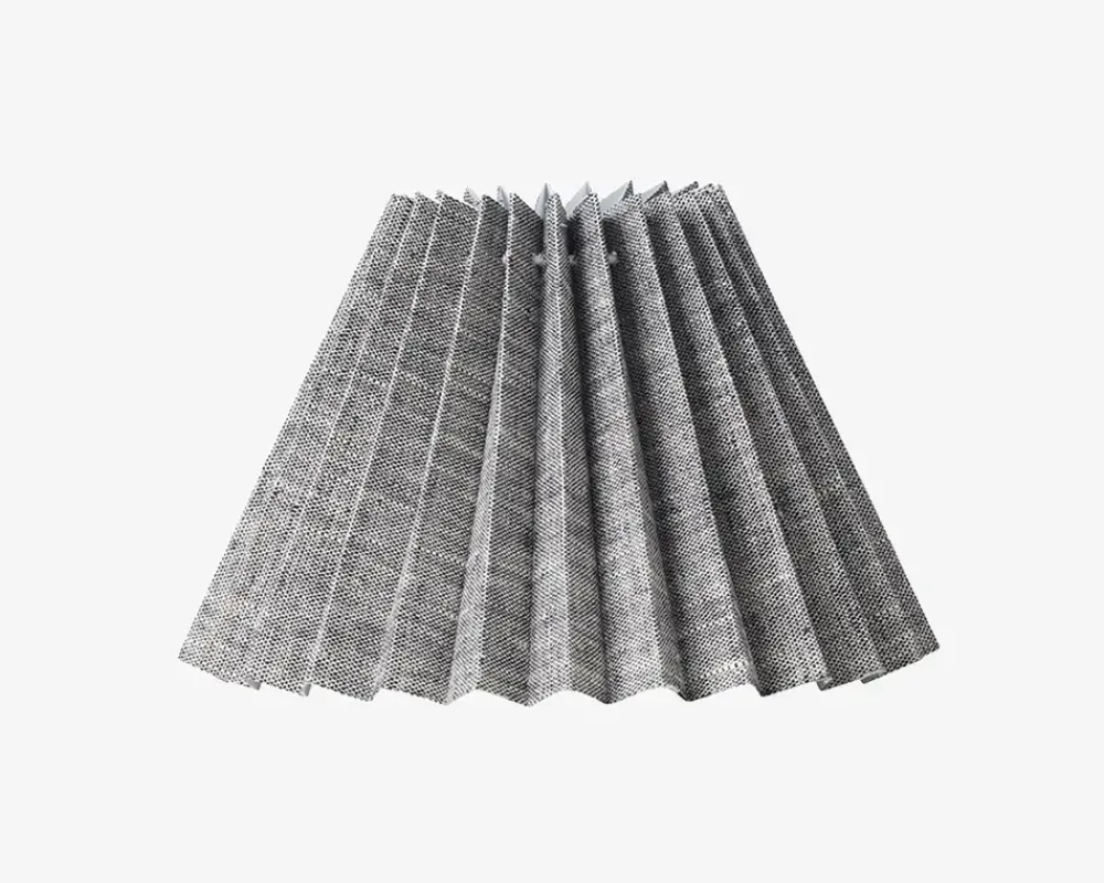 Flot og klassisk plisseskærm af plastik/stof, som passer ind i ethvert hjem, da farven er enkel og neutral. Lampeskærmen er særligt velegnet til en lampefod som kan købes fra sortiment.