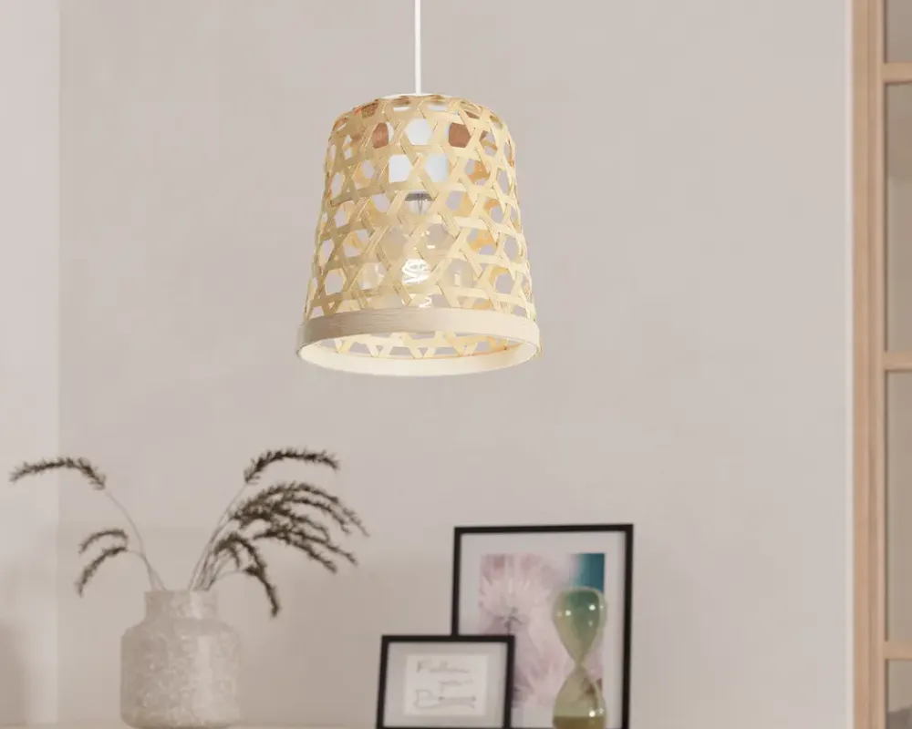 Capoliveri er en lampeskærm i bambus der skaber en varm og hyggelig stemning. Med sin naturlige struktur og lette udtryk tilfører den et organisk touch til indretningen. Den åbne flet lader lyset skinne igennem og giver et blødt, stemningsfuldt skær – ideel til både stue, soveværelse eller sommerhus.