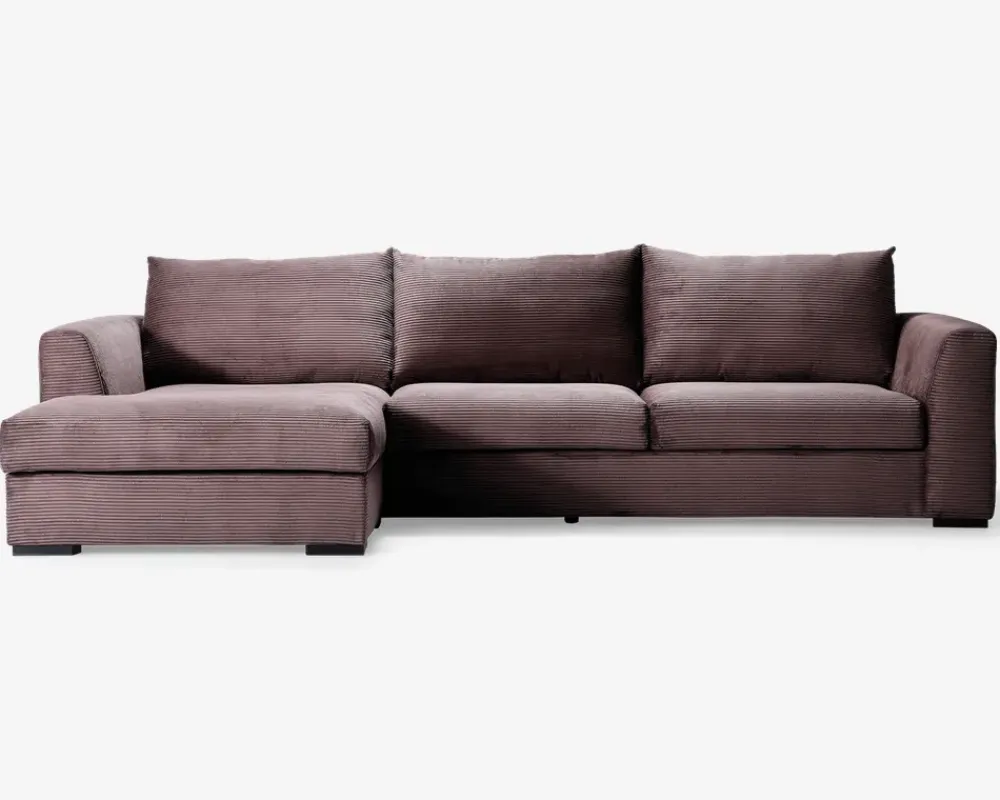 Lækker stor sofa med open end i exceptionel kvalitet i et meget eksklusivt design. Sofaen er her monteret med slidstærkt og moderigtigt bredriflet fløjl men kan bestilles i mange andre typer møbelstoffer og i mange forskellige farver. Sofaen har en siddekomfort ud over det sædvanlige med en sandwich konstruktion af flere lag koldskum i forskellige hårdheder, for at opnå den helt rigtige komfort. Og for lige at toppe det hele, er ryghynderne lavet med skumgranulat og silicone fibre, så de er dejlig bløde og indbydende. Alt i alt så er dette sofaen som alle vil snakke om når de har prøvet den. Når man først har sat sig, vil man ikke op igen.Lagerføres i denne farve enten højre eller venstrevendt. Kan bestilles i mange forskellige møbelstoffer. • Exceptionel god kvalitet• “High Density” koldskum i både sæde og ryg• Fantastisk siddekomfort og lang holdbarhed.• Dejlig bløde og indbydende ryghynder• Kan bestilles i flere farver og møbelstoffer• Mål i cm. L. 317 x D.97/155 x H.46/92