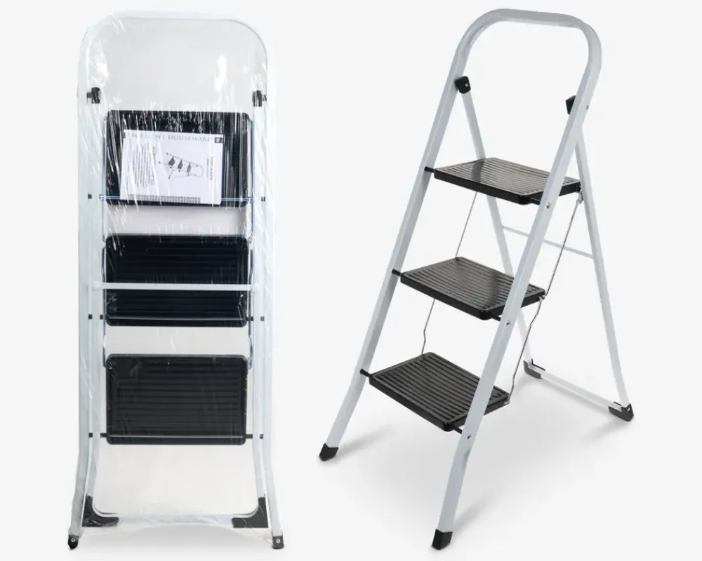 Praktisk stige der nemt kan klappes sammen så den ikke fylder. Kommer i 2 forskellige højder og er lavet i metal.