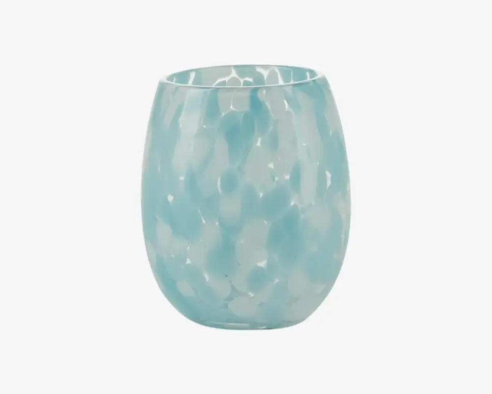 Vandglas i mundblæst glas med mønster i lyse blå nuancer. Glasset er en del af en serie som fremstilles i forskellige farver, ligesom der findes skål i serien. Skålen kan både bruges til morgenmad eller snacks, eller som indretning i hjemmet.Glasset tåler opvaskemaskine.• Mål i cm. : H.11,5 x Ø.9,5• Materiale: Glas• Farve: Lys blå•Kan vaskes i opvaskemaskinen